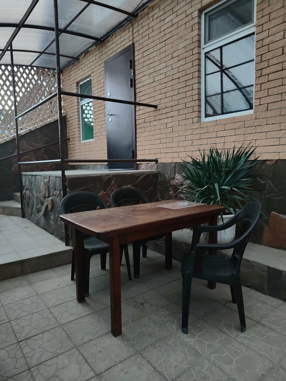 - Чистота и уют.; Удобная кровать с хорошим матрасом.; Красивый двор, столик и стулья рядом с номером.; Наличие кухни и мангала.; Наличие кондиционера, телевизора, холодильника.