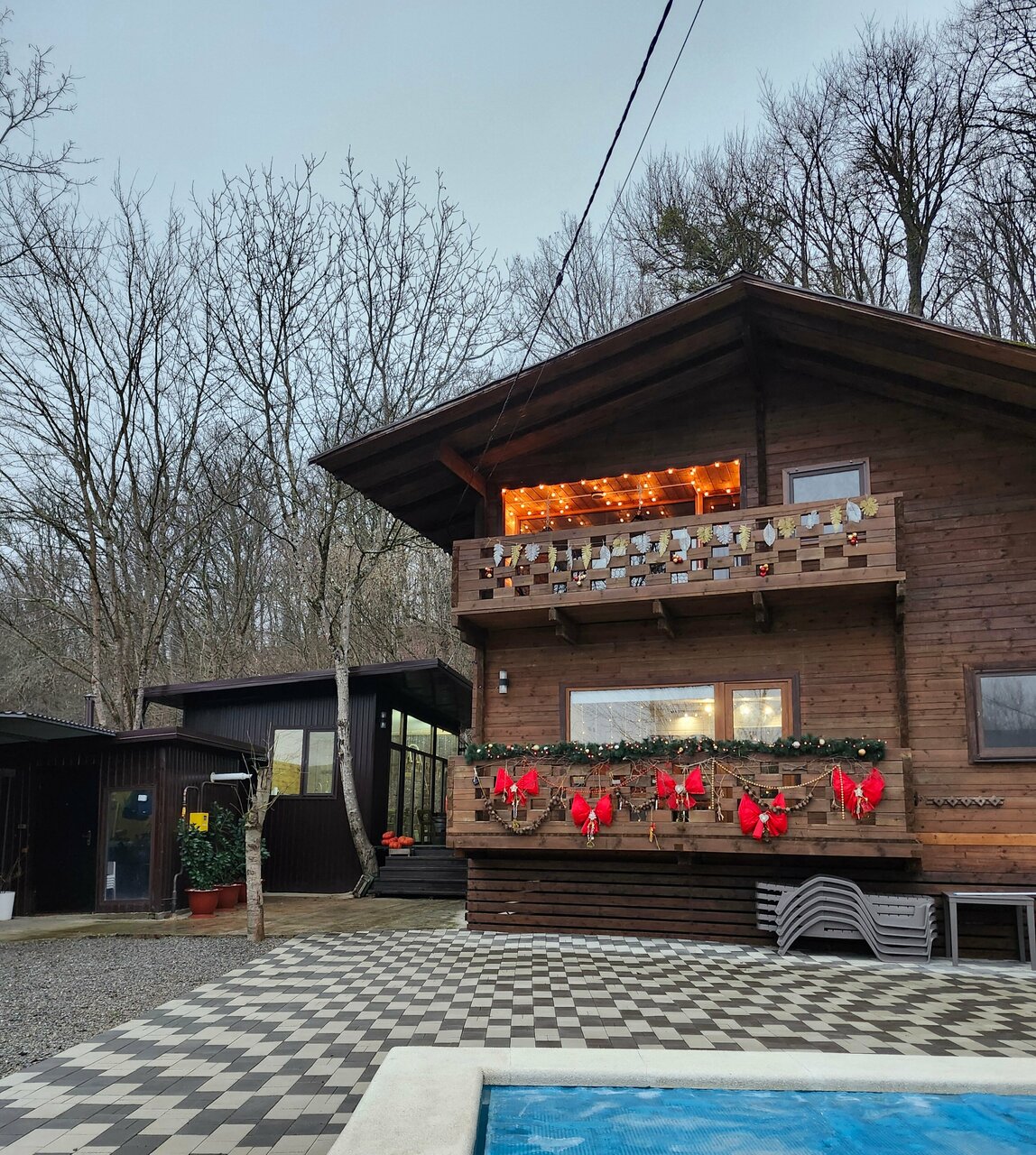 Очень хорошее и уютное место. Прекрасно провели время в лесу на свежем воздухе. Бассейн это отдельная тема — это просто супер!!! Теплая вода как на источниках. А когда пошел снег, то вообще показалось, что мы как в сказке очутились