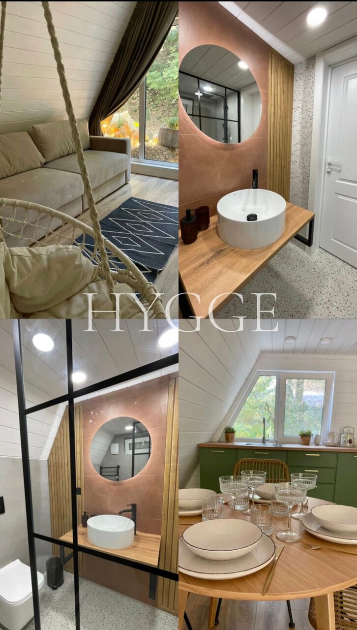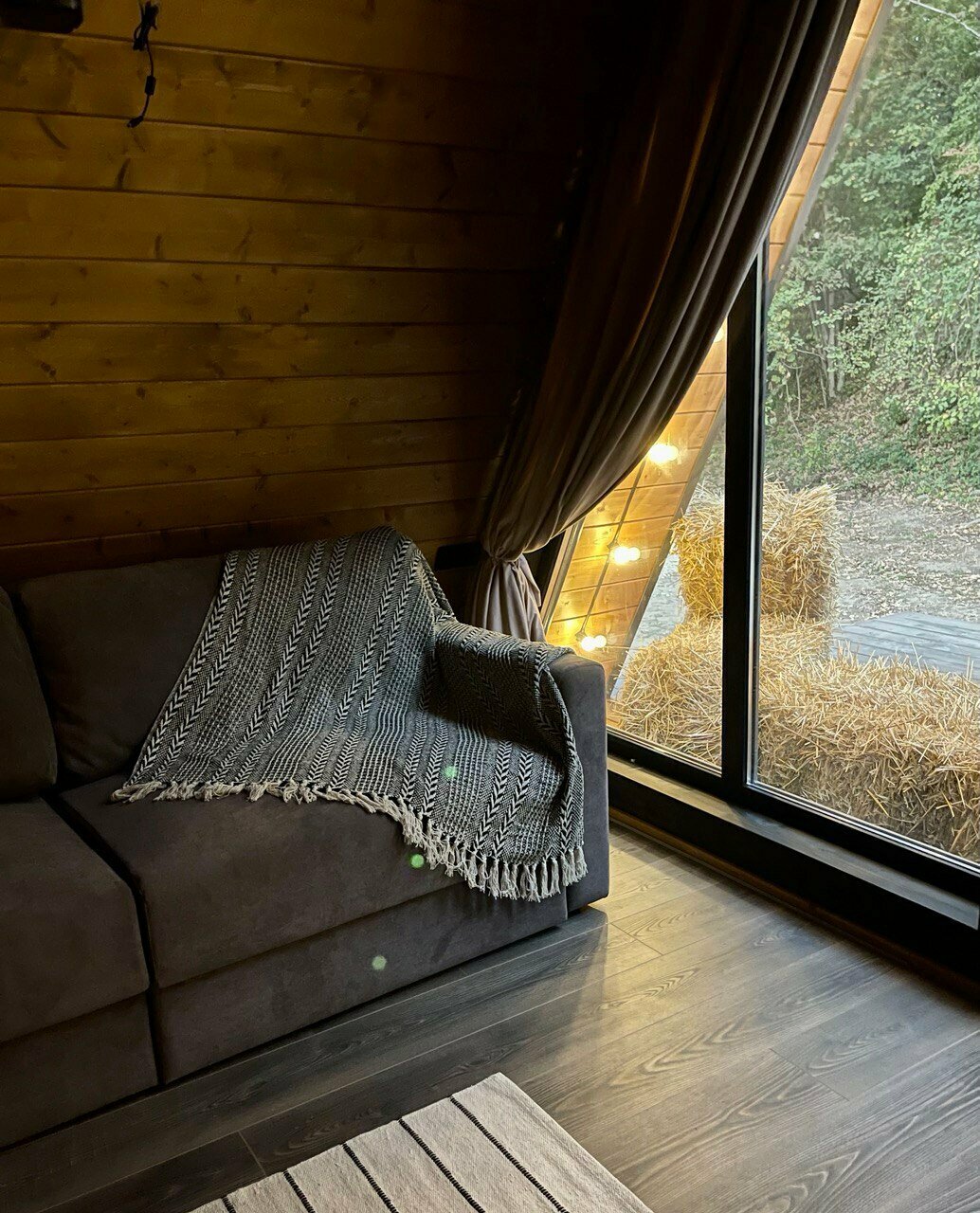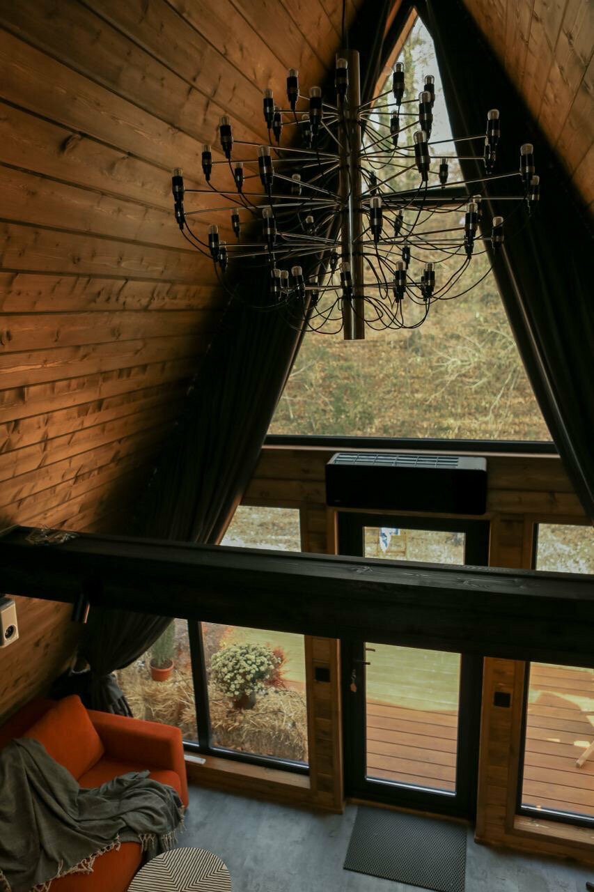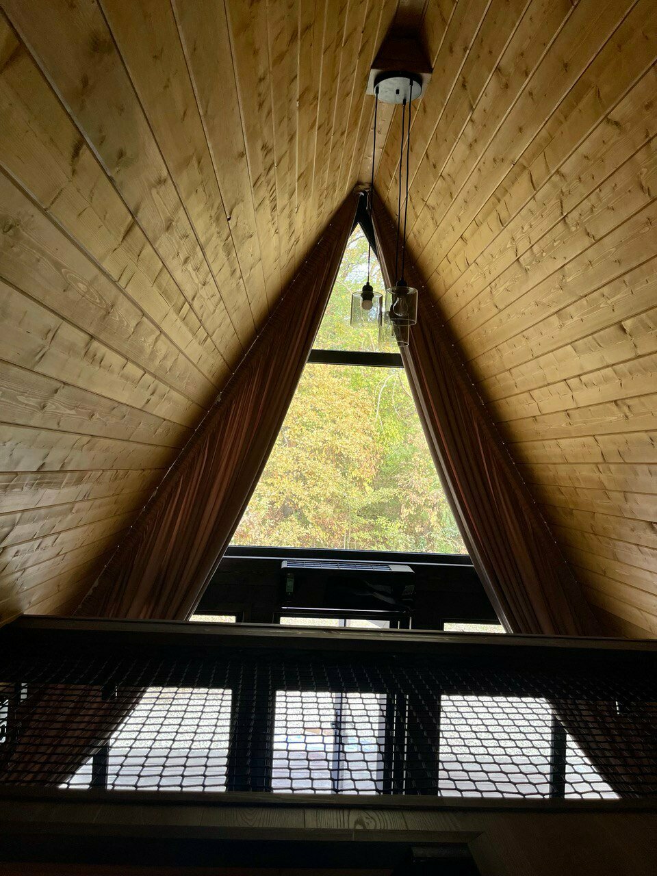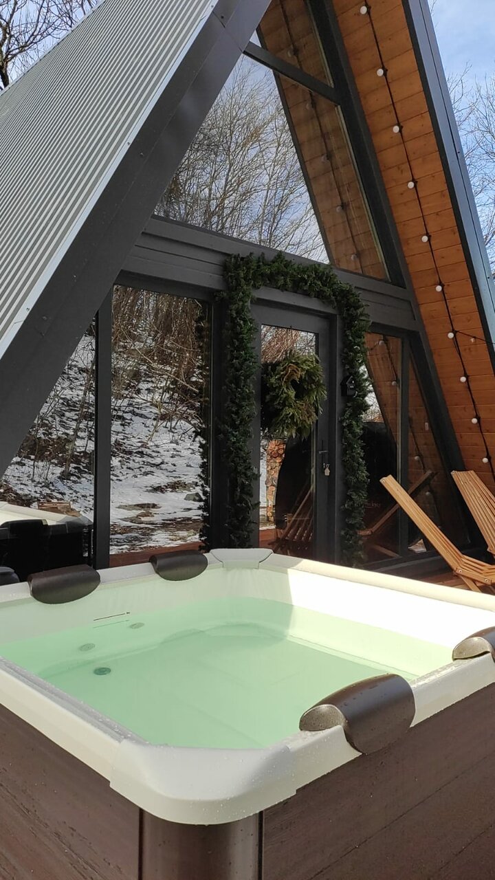 Стильный комфортабельный дом А-фрейм с понорамными окнами видом на лес . На террасе домика есть джакузи, оплачивается отдельно. Стоимость джакузи на террасе домика 4 тыс/сутки, подогревается все время в течение суток, использовать можно без огр...