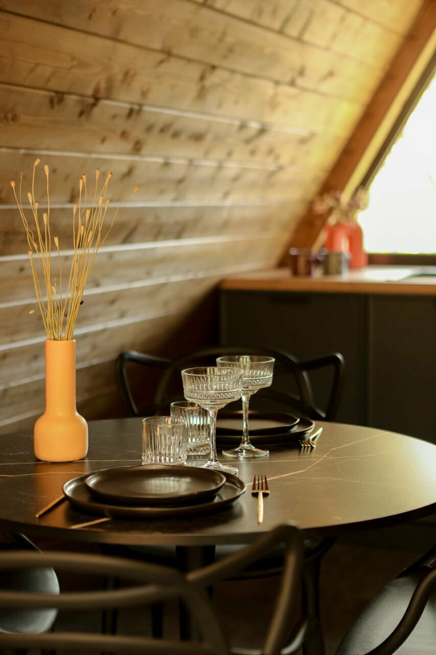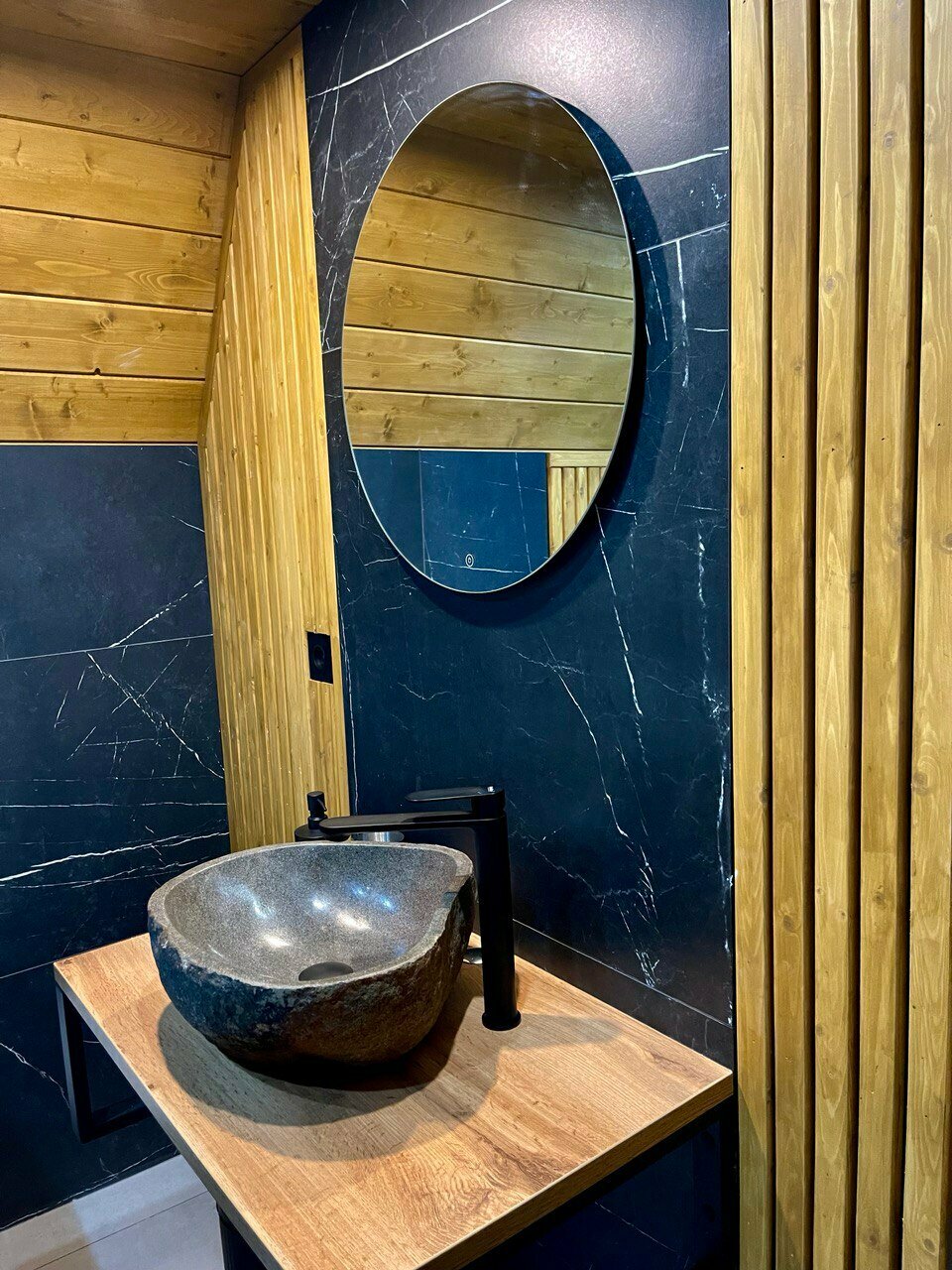 Невероятная атмосфера отдыха, расслабления и единения с природой: с одной стороны лес, с другой речка. Домики очень красивые со стильным интерьером. Есть все и даже больше для комфортного отдыха. В домиках очень чисто. Купель — это особое наслаждение. Администрация очень приветливая, доброжелательная и отзывчивая.