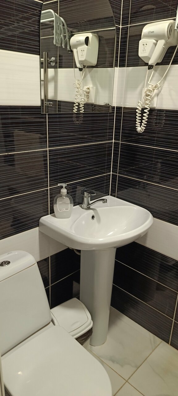 Удобства: — Номера (от 4000 до 7000 ₽/ночь) с кондиционером, телевизором, чаем/кофе, феном. — Бесплатные: парковка, детские кровати (0–3 года), Wi-Fi. — Платные: детские кровати (4–10 лет), трансфер (до/от аэропорта). — Дополнительно: прачечная, камера хранения, терраса, площадка для пикника.