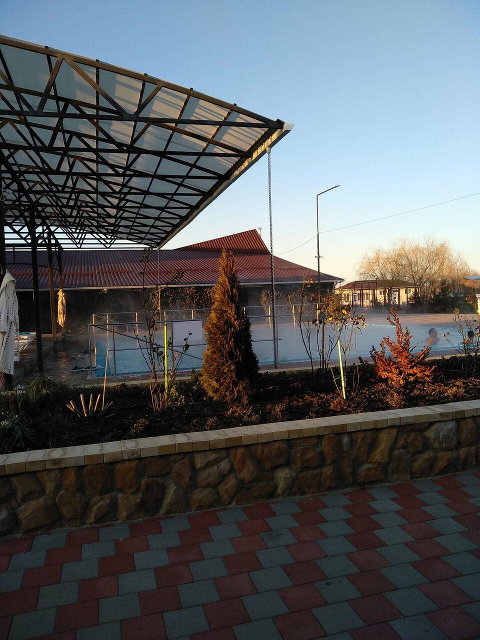 Очень понравилось. Чистые уютные домики. Есть где пожарить шашлыки. Отличные термальные бассейны. Очень красивые растения на территории . видно что за ними ухаживают. Все в цветах. Очень много семейных пар. И пенсионеров. Много кто с детьми. Для них есть отдельный бассейн с Горками. И еще очень понравилась столовая. Очень вкусно . приезжайте не пожалеете. Мы были очень рады что посетили аква-тонику.