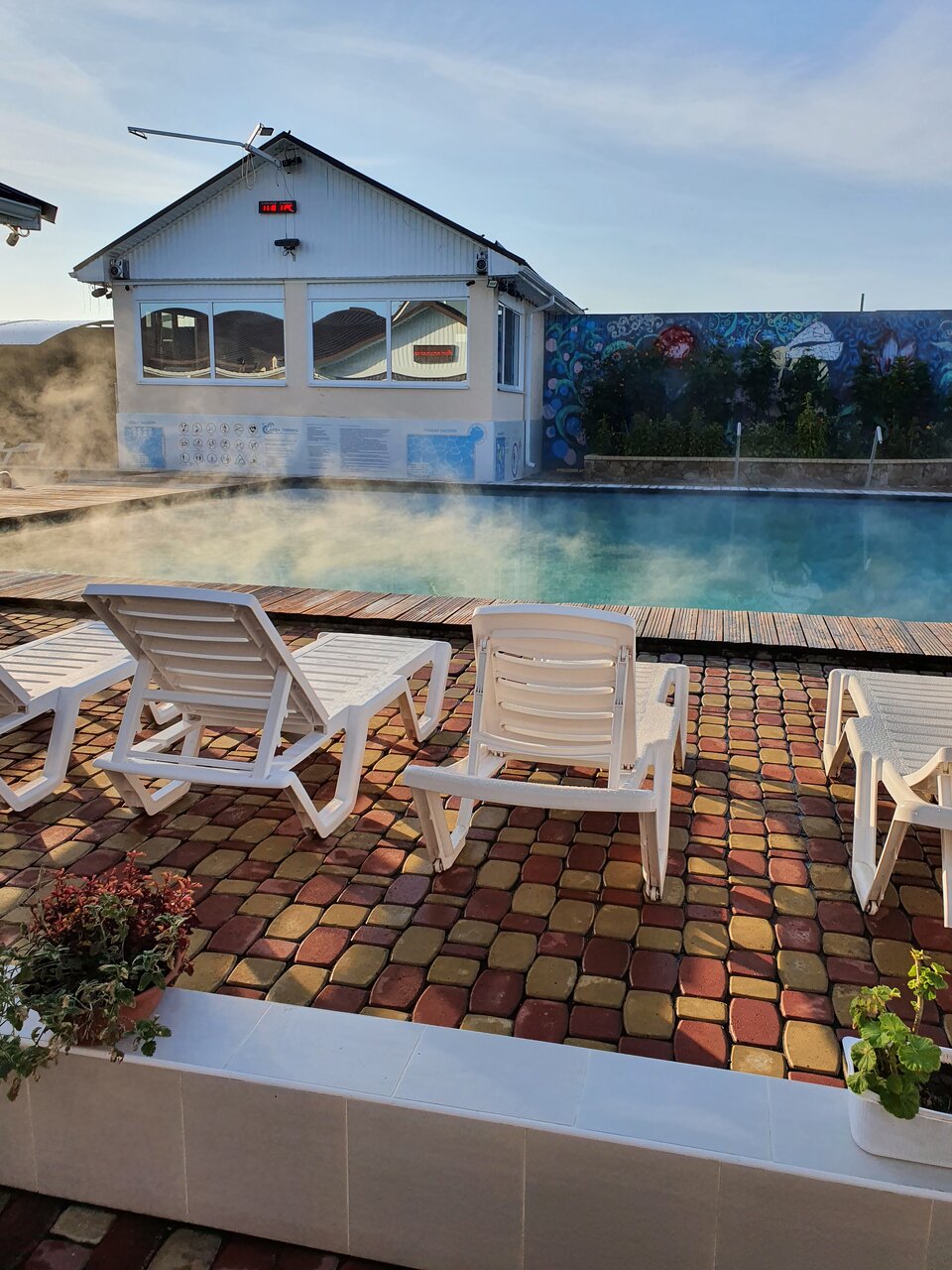 Любимый термальный источник из всех ближайших. Всё продумано, удобно, безумно красивая и приятная территория, три бассейна с гидромассажем и разной температурой воды плюс детский бассейн с горкой. Беседки, которые не нужно оплачивать дополнительно и бронировать, большая, удобная мангальная зона, удобные по всем параметрам номера, столовая, вежливый персонал, просто сказка, Аква-Тоника 10/10