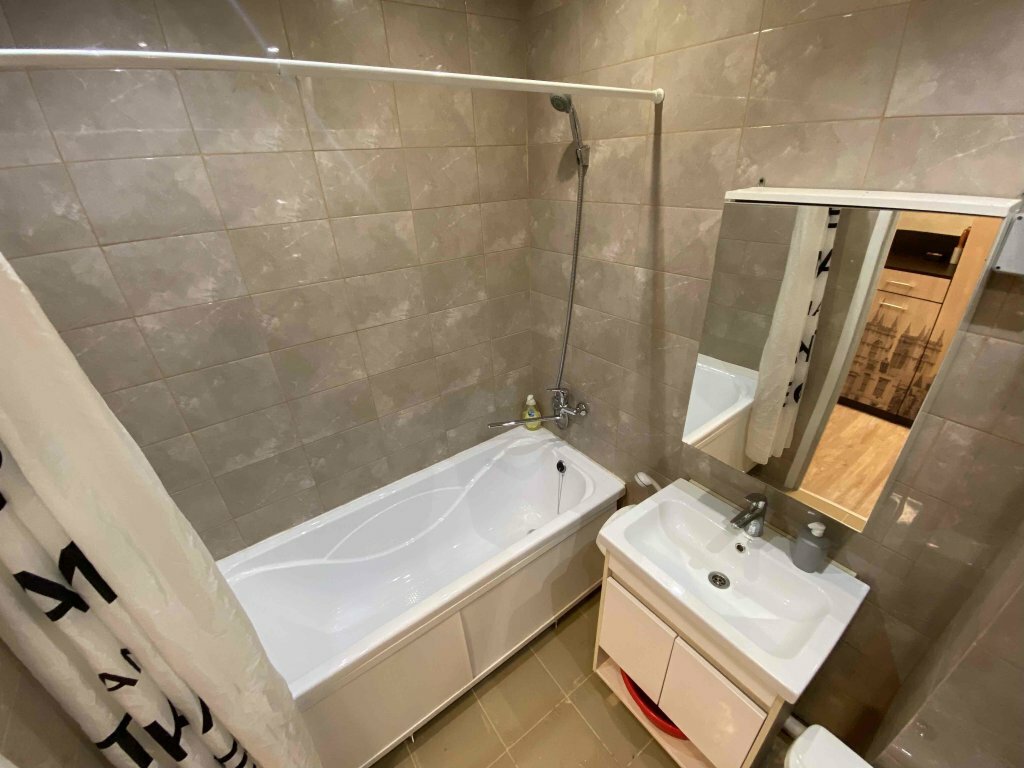 Небольшая студия с двуспальной кроватью, раскладным диваном и мини-кухней, экономичный вариант проживания для семей и компаний до 4 человек. Апартаменты расположены на 4 этаже, подъезд отремонтирован, лифт отсутствует.