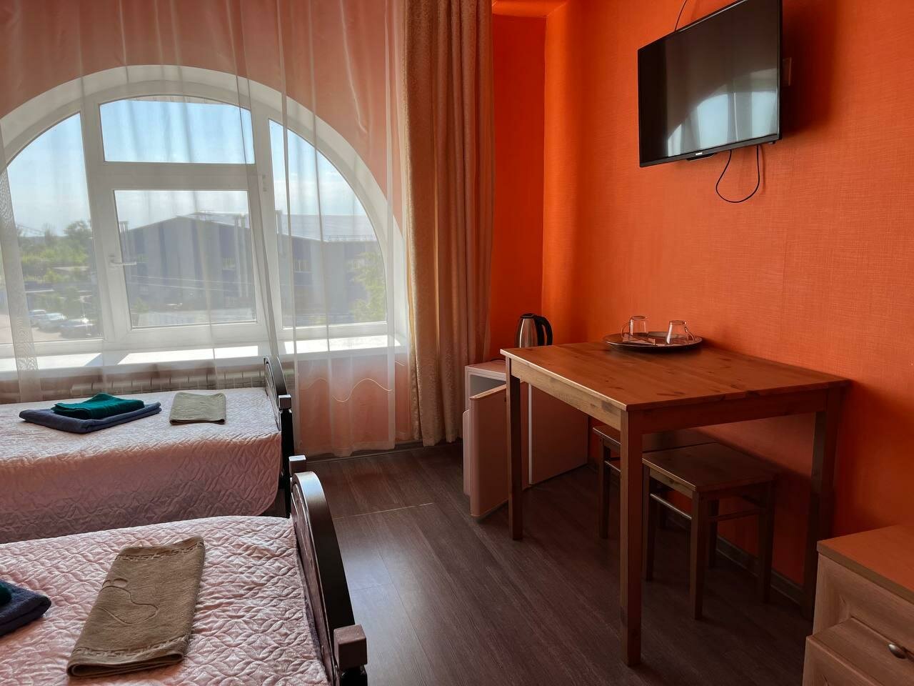 В номере все удобства: санузел, холодильник, чайник, посуда, ТВ, wi-fi, гигиенические принадлежности
