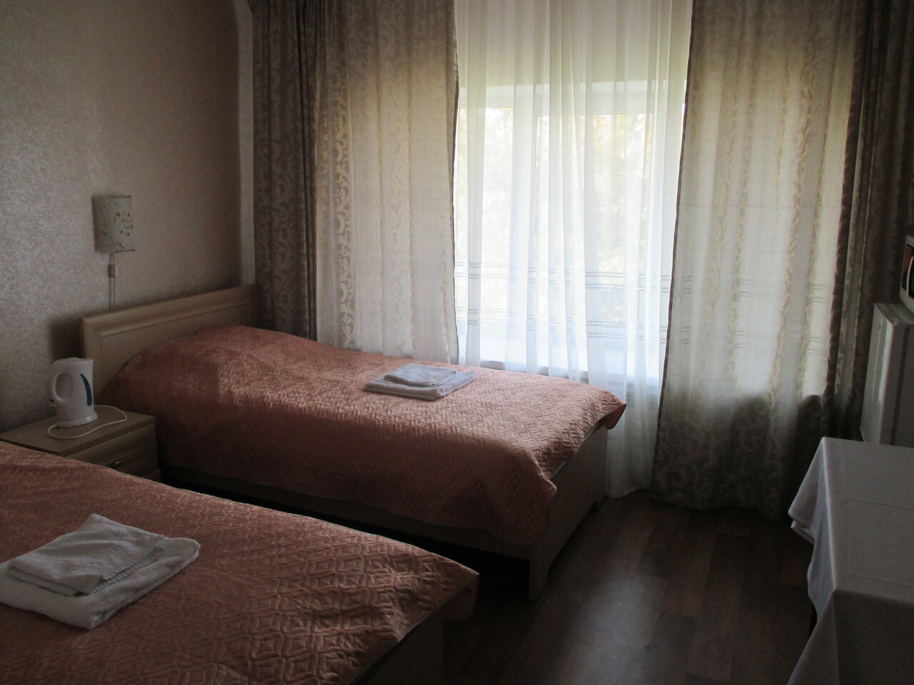 Хорошие прочные кровати, не раздвигаются, если сдвинуть. Есть вайфай. Но за ребенка надо доплачивать 800 руб даже без дополнительной кровати.