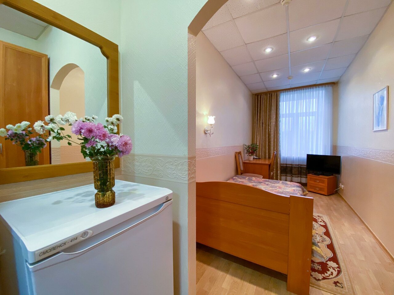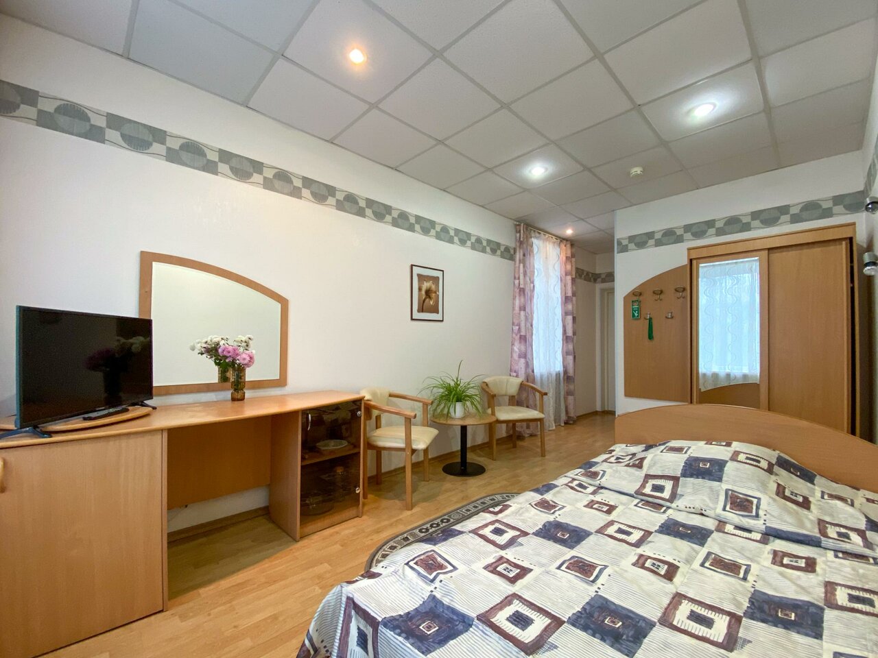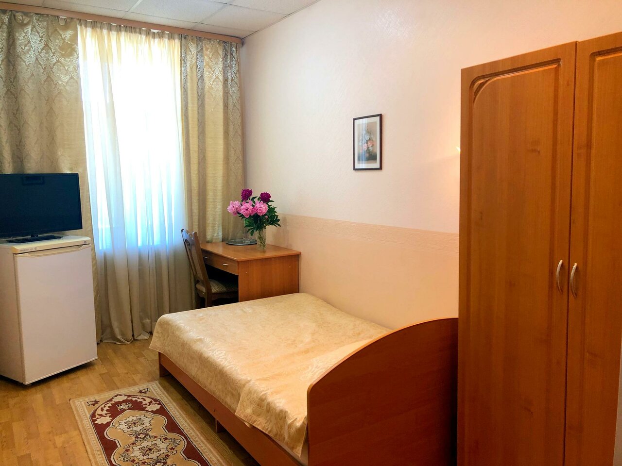 Хорошая, тихая гостиница. Директор бдит, навещает, есть вода в бойлерах, можно стирать, сушить и гладить белье, получить маленький сухой паек утром, заказать завтрак, погулять в сквере и купить необходимые продукты рядом в магазинах. Персонал прекрасный, особенно общительная юная Даша.