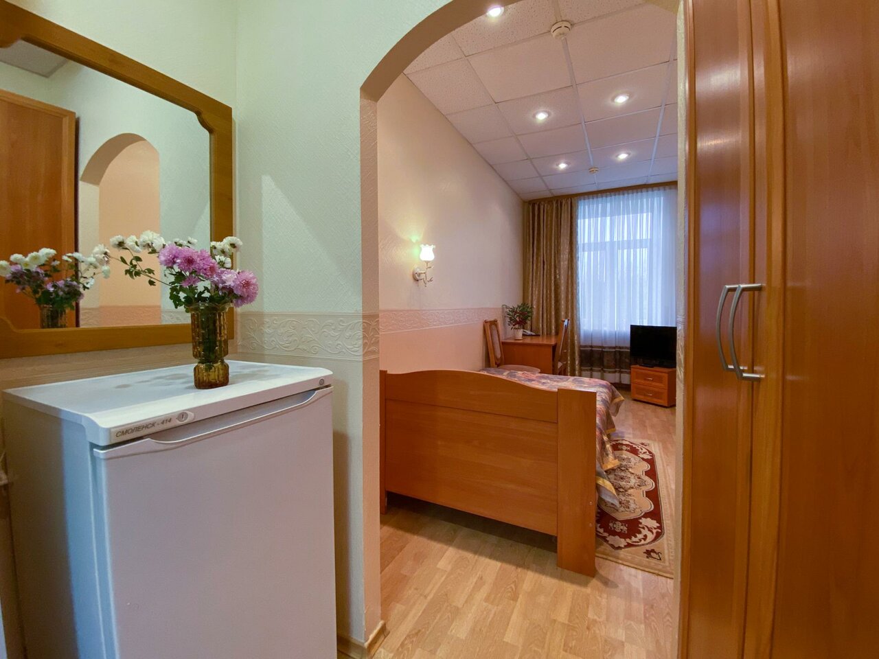 Очень понравилось. Уютный номер, широкая кровать, телевизор, холодильник, душевая кабинка. Минус, что далеко от центра.