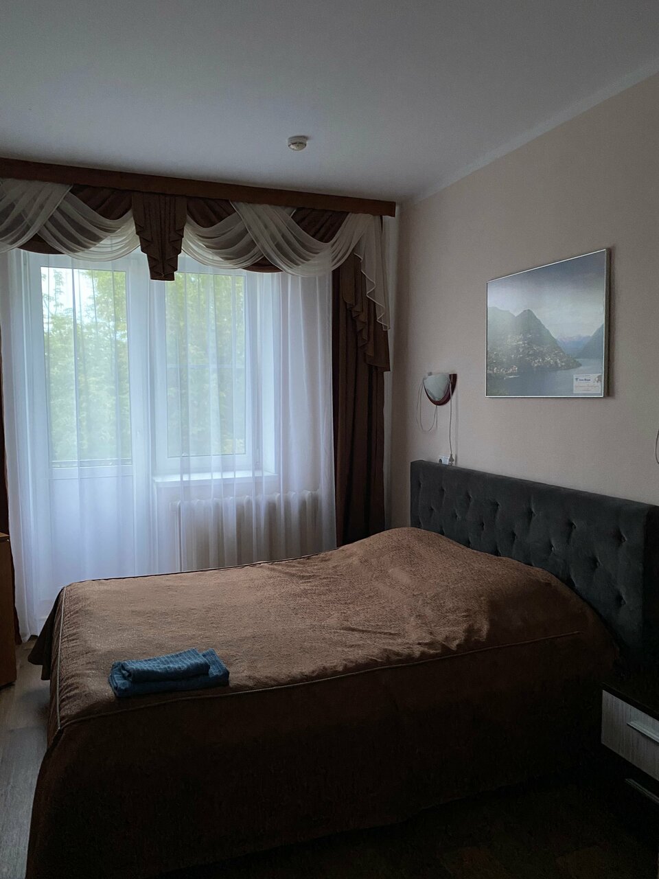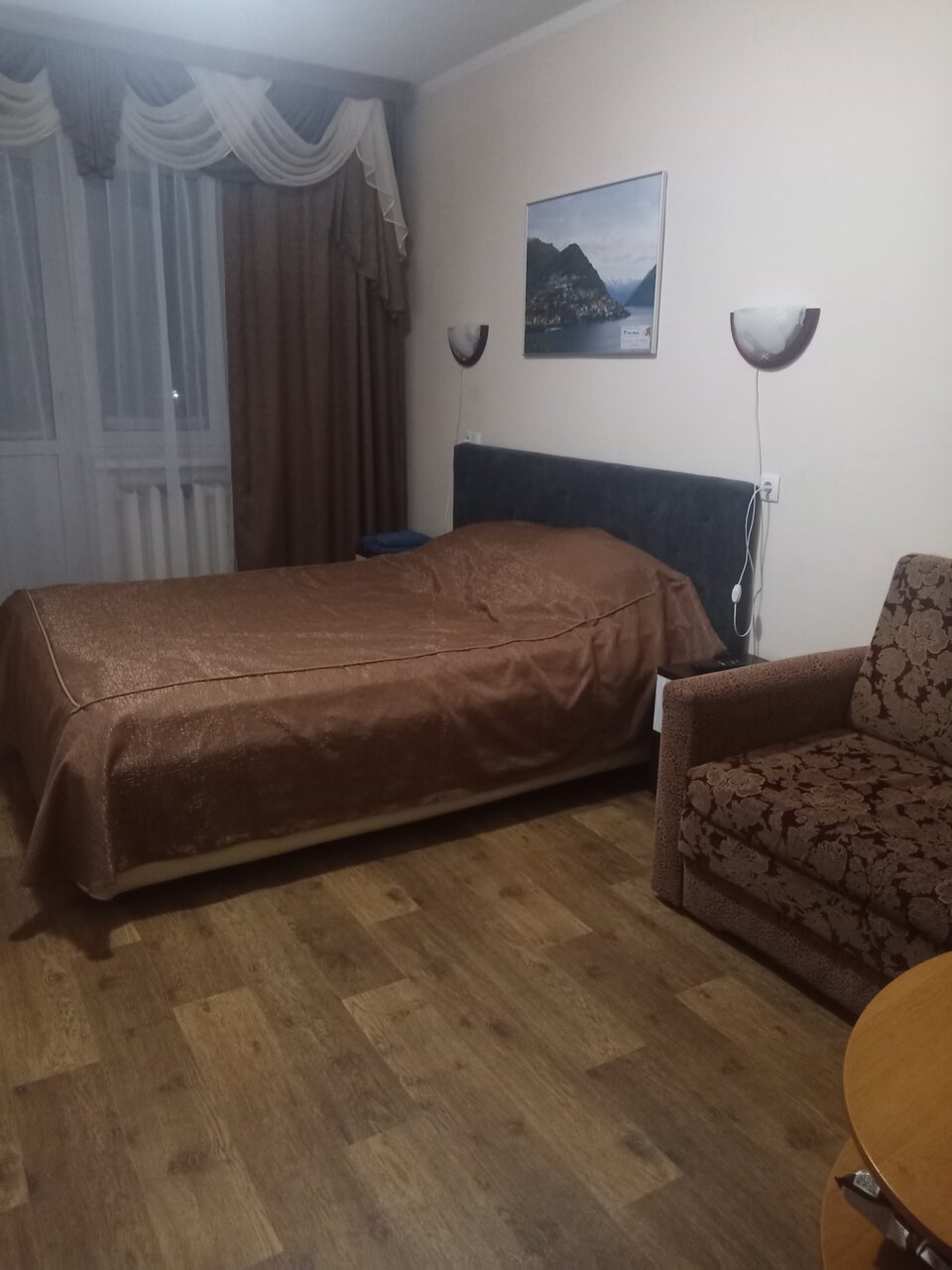 Не так давно,остановились с мужем в этой гостинице, устали с дороги, желания перебирать жильё не было . Это было нашей ошибкой! Выбирали по отзывам, вроде хорошие. Наверное их пишут военные которые там в большинстве проживают. У нас был номер с балконом, подороже. Это была вторая ошибка , ведь балкон с видом на заброшку и хлам не лучшее зрелище , наверное, поэтому и все фото якобы с балкона вдоль стены! Теперь кратко: 1 ~стены — картонка, слышно как и о чём в соседней комнате разговаривают люди 2 ~ кондиционера нет нив одном из номеров ( уточняли) 3 ~ бельё застиранное очень сильно 4 ~парковка формально охраняется Из плюсов только доброжелательный персонал, спасибо им. КАТЕГОРИЧЕСКИ СОВЕТУЮ ИЗБЕГАТЬ ДАННУЮ ГОСТИНИЦУ! Фото прикрепляю.