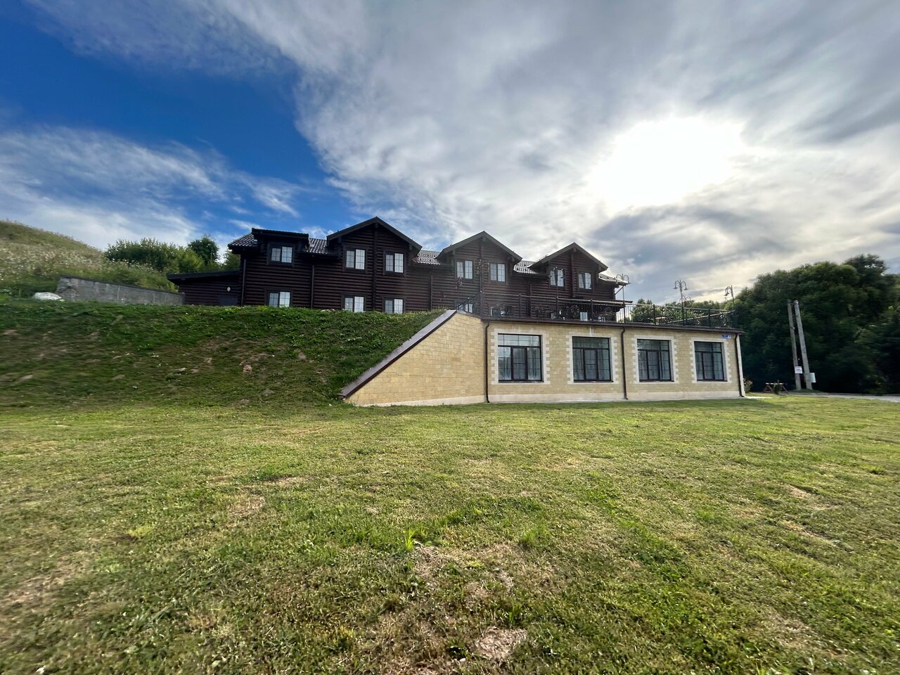 Отличный вид с горы рядом или с веранды, в номере все есть, даже холодильник. Ставят доп .кровати для детей. Доброжелательный персонал. Вкусный завтрак на заказ, парковка, мангал. А какой воздух там снаружи!