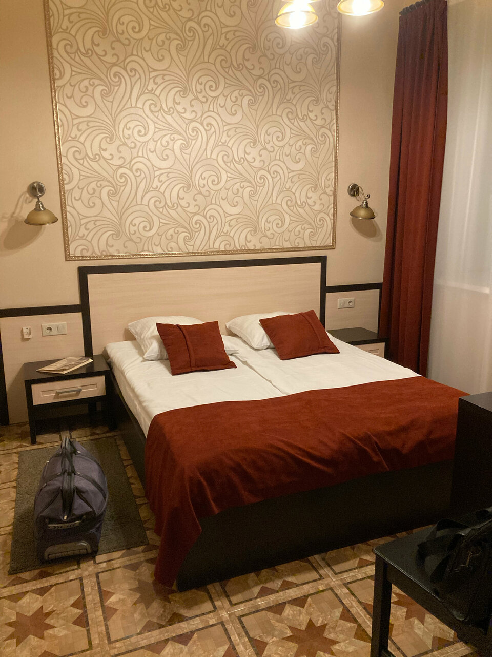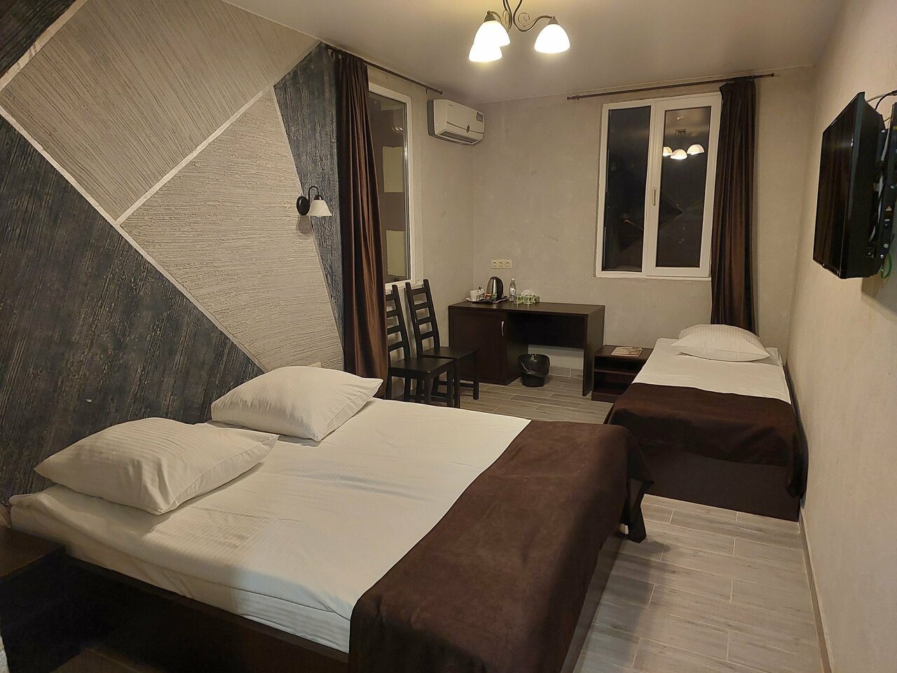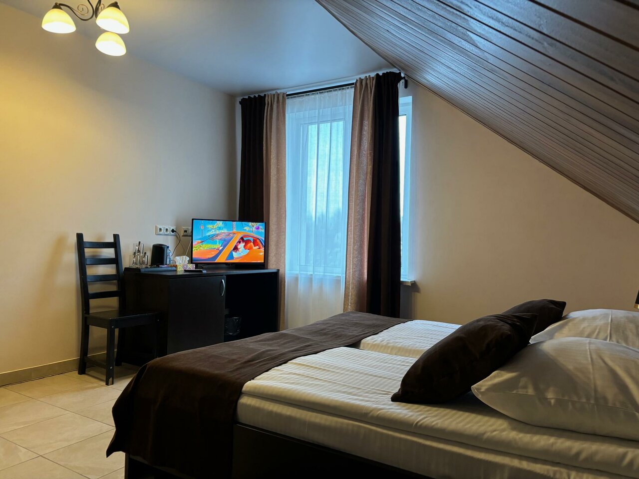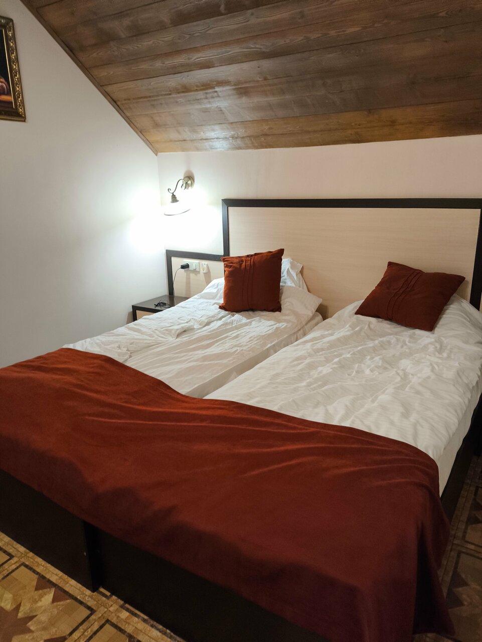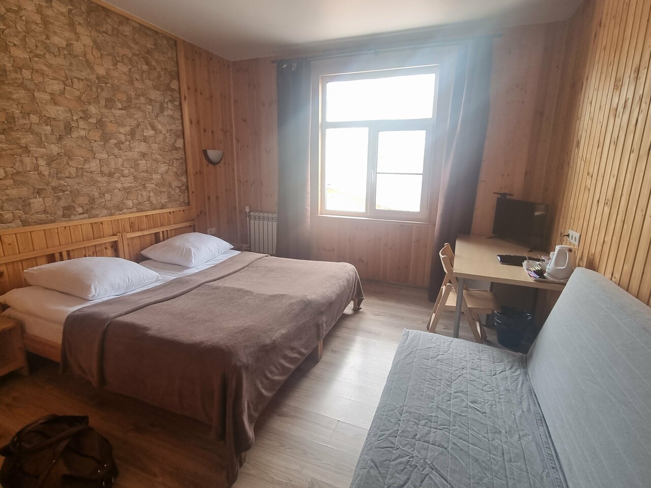 Привёз группу. Неожиданно поменял мнение. Был хороший отель. Новые люди на ресепшине. Окно в номере открыто и отопление выключено. И это в +5! Включил некий регулятор на стене и жду. Два часа и ничего, холод. Администрация говорит, что инерция мол, через пару часов нагреется. А если не устраивает (менеджер Ольга), то попробуйте переехать в номер п водителю. А то, что он спит, ибо проехал 750 км, пофиг. Главное, чтоб туристы были довольны, а гид и водитель — по спят в номерах, где нет окон, где(402), когда сливают воду в унитазе в номере наверху, то слышно так, будто сам в трубе канализации сидишь (401). Нигде нет такого отношения к гидам и водителям. И пофиг, что им утром работать, отвечать за безопасность людей… И не предложили даже нагревателя, чтоб номер нагреть и холодные кровати. Жаль. Хороший был отель. Хорошие номера, кроме указанных. Отличные завтраки. Но… Меняю мнение. Мы ваши коллеги, а вам на нас… Да! И ещё у вас в 401 номере дверная коробка отваливается.