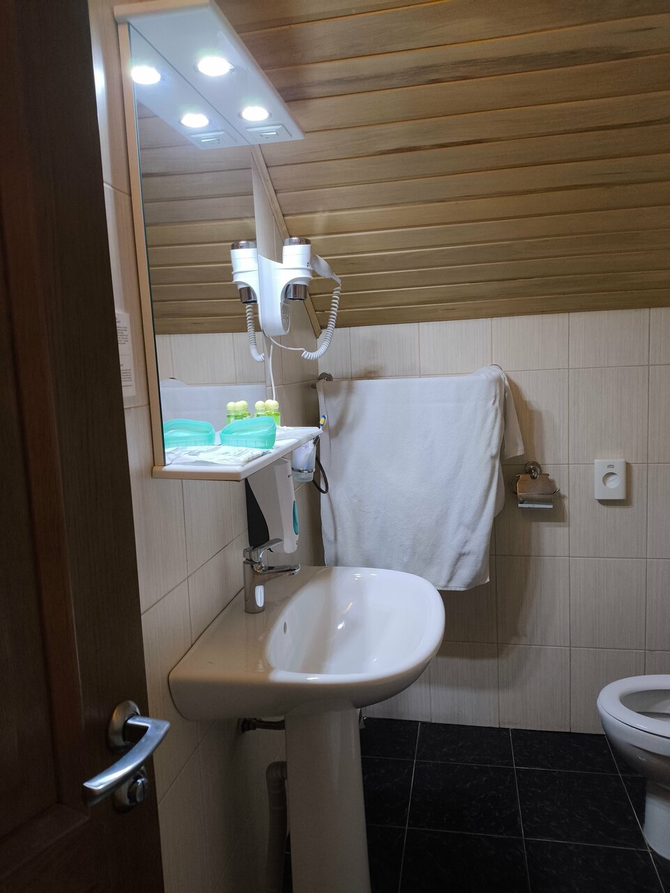 Очень нравится этот отель. Официально уровень 3 звёзды, но я бы дала все 5! Всё на высшем уровне! Чисто, аккуратно, одноразовые тапочки на каждую персону. Чай, вода, шампунь и гель для душа. Полный набор полотенец (2 шт) на каждую персону, плюс полотенчико для ног. По утрам завтрак-шведский стол. Рекомендую!