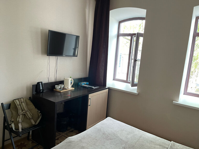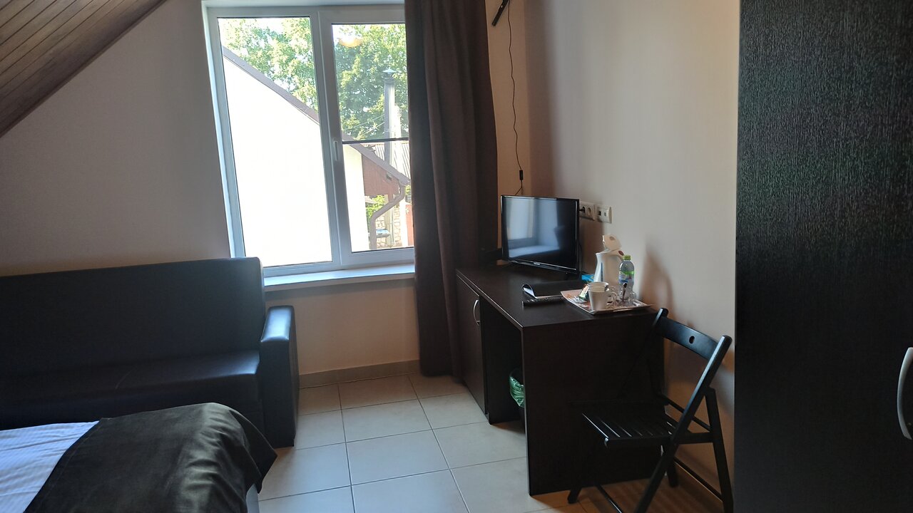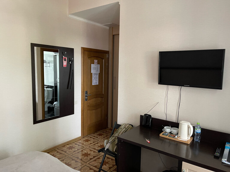 Все чисто, аккуратно, в номере был туалет, душ, очень чистое белье. Телевизор тоже был но показывает очень плохо и в комнате не ловил интернет. Так как останавливался на одну ночь, было не принципиально.