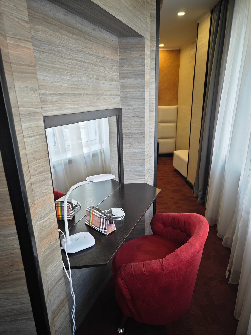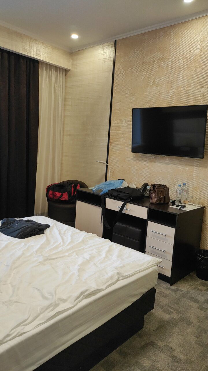 Отель 3-4* В целом все нормально. Переночевать можно. Чисто, уютно. Кровать удобная, тапочки, халаты есть. Еду можно заказать. Внизу ресторан бар, в этом же здании есть фитнес клуб с бассейном и СПА зоной.