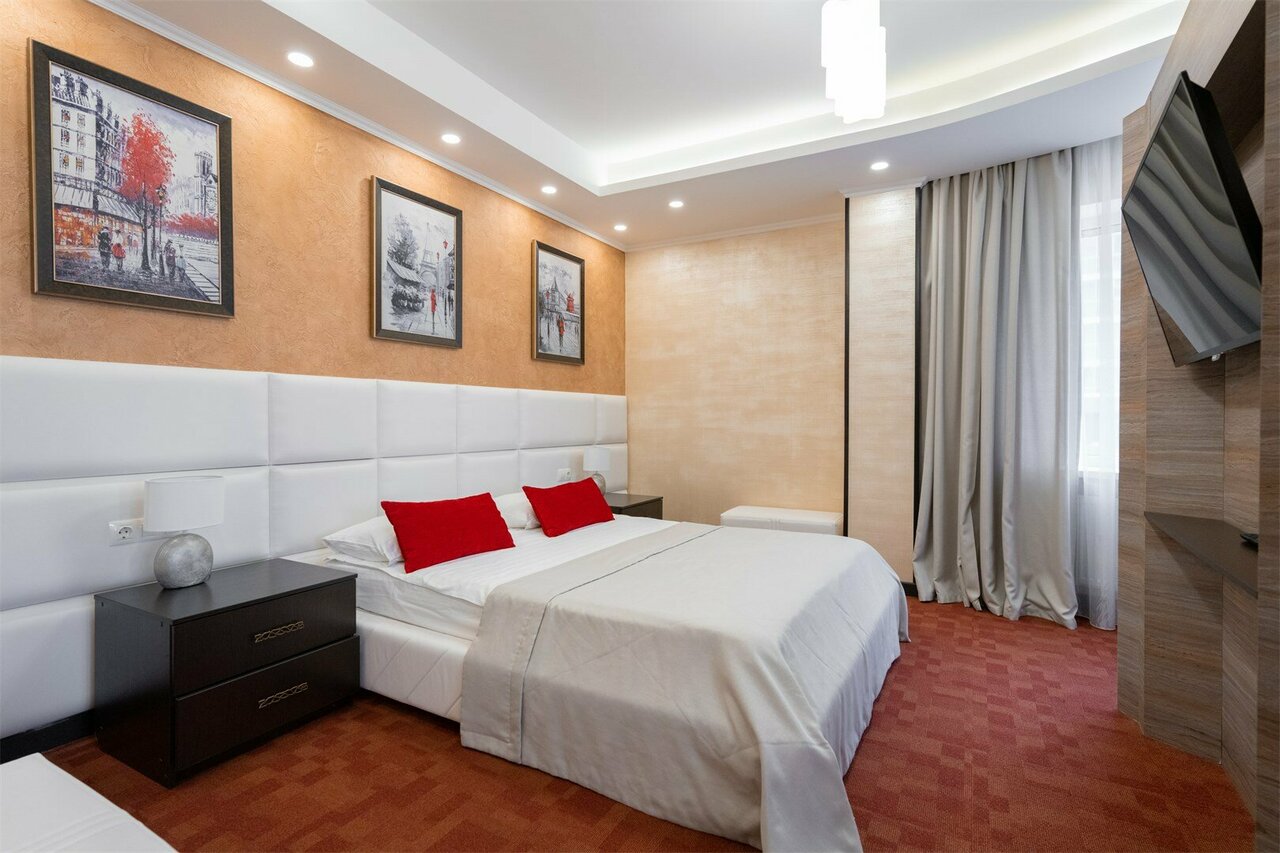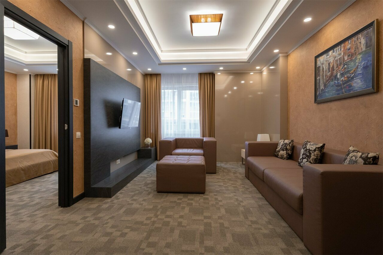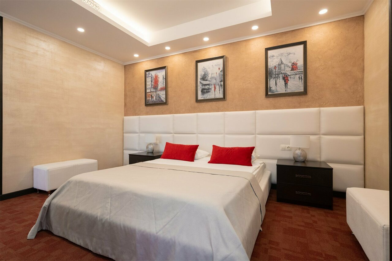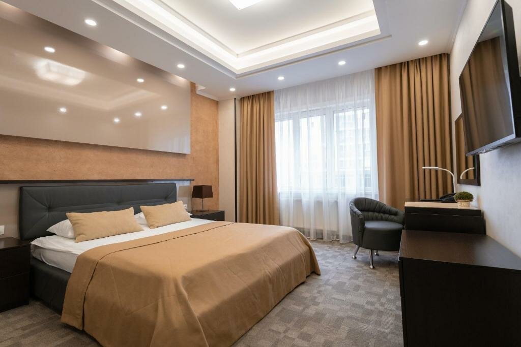 Крутой и безупречный отель! Чистота на уровне! Номер был обычный но замечательный! Белье чистейшее, наглаженное. Завтрак очень вкусный , вечером ужинал в ресторане Абажур, заказывал стейк рибай. Очень понравилось, шеф на высоте! В общем однозначно рекомендую к посещению! Прекрасное место! Персонал очень учтив!