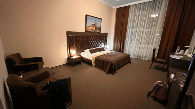 Качественные номера с хорошим наполнением, достойный ресторан при отеле, один минус — слабый ви-фи и плохое покрытие сотовой связи.