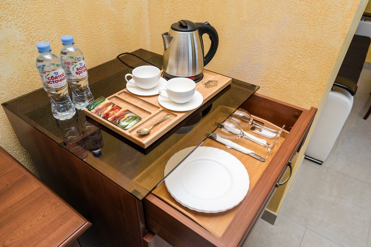 Отличный матрас, полотенца, душевая сантехника, напор воды — это то, на что я обращаю своё внимание. В номере есть приборы, вода, чайник, утюг, фен.