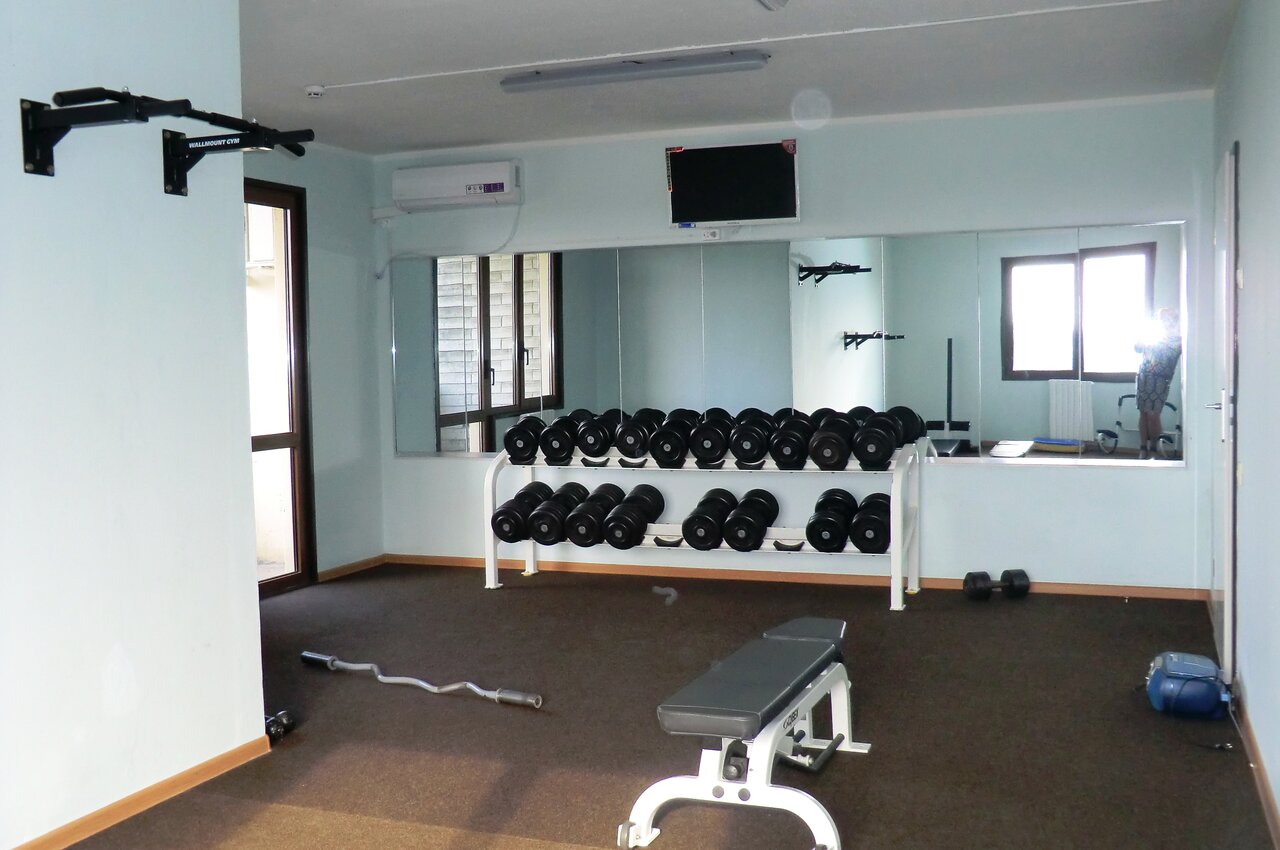 Для простых тренировок есть всё необходимое. Зал среднего уровня, оборудован слабо, необходим ремонт. Имеется ванная комната с гигиеническими принадлежностями, раздевалка