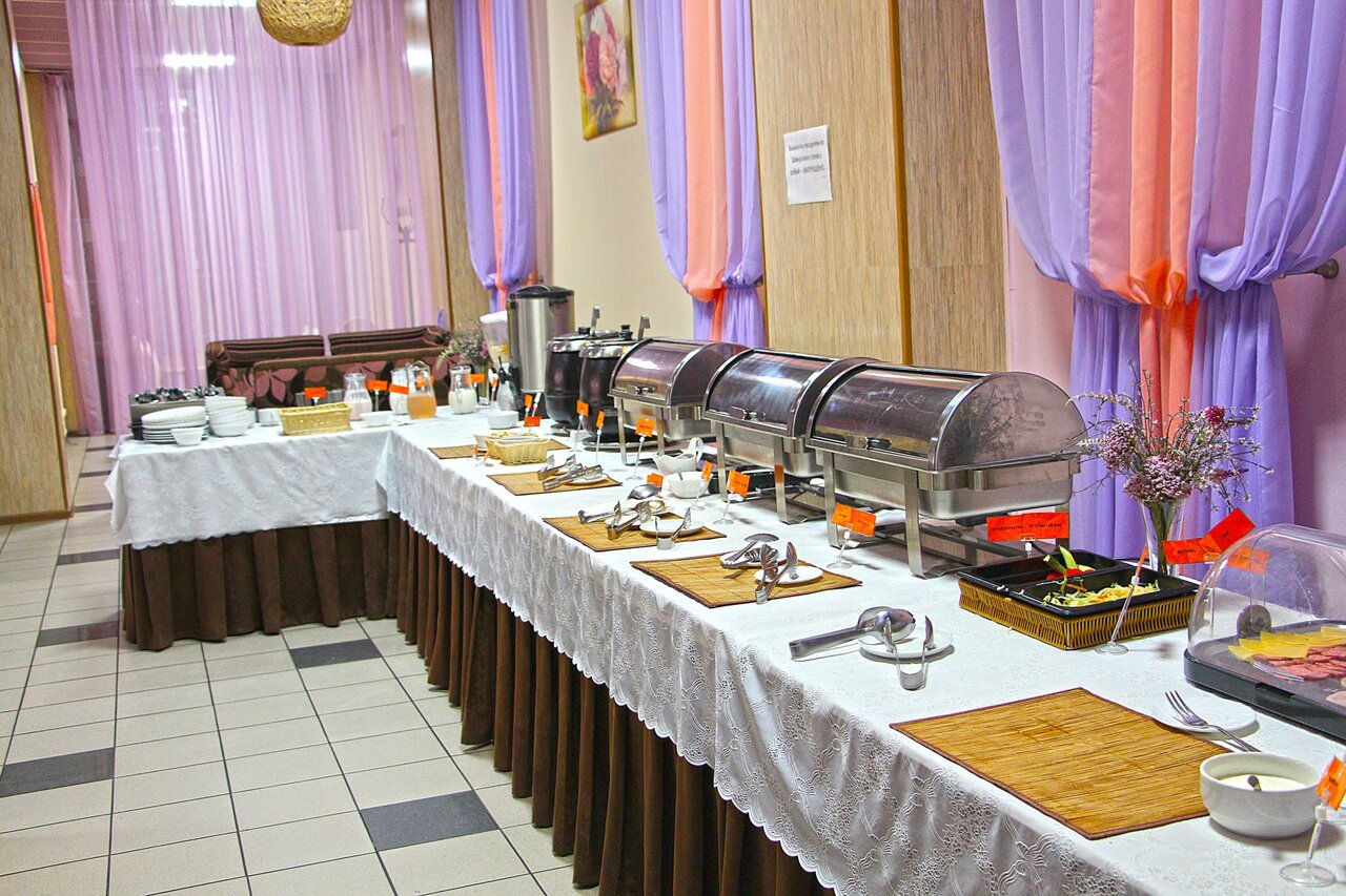 Уютная Гостиница почти в центре города. Рядом торговый центр и фитнес-клуб. Завтраки в кафе на территории фитнес-клуба. Разные: иногда шведский стол накрывают, иногда просто кашу с омлетом.