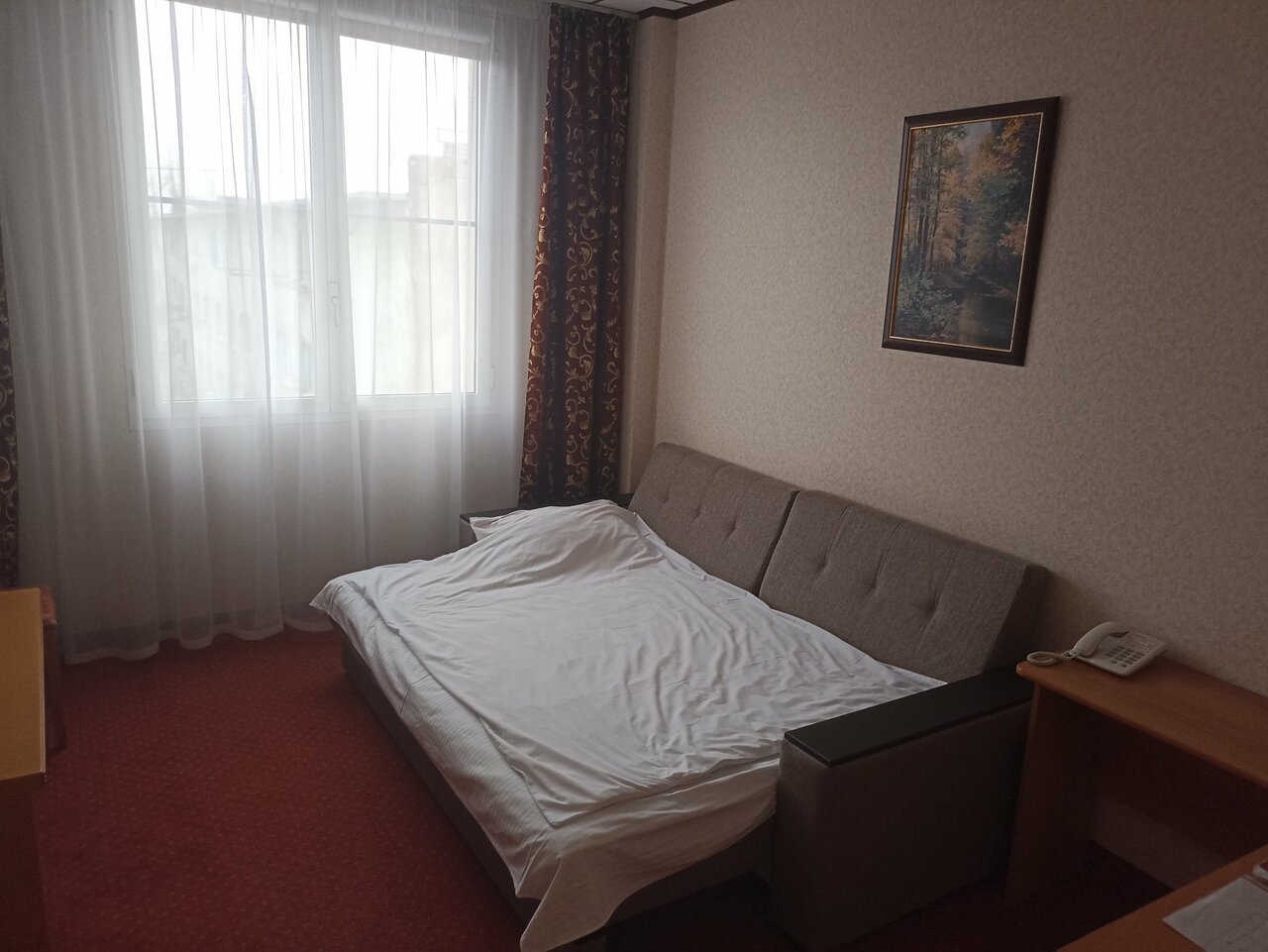 Заехал в командировку на две ночи в середина октября 2021. Брал полулюкс за 3200. Гостиница вся занята. Находится в центре города. Старого города. Полулюкс оказался двухкомнатным. Нормально. Чистая постель, ванна с душем. Уборка. Есть стоянка. Есть два лифта. (На 4 этажа) Всё ЭТО на твёрдую четыре. Завтрак , несмотря на 13 вариантов по заказу из этих вариантов небогат. Отличия составляют различия между яишницами, кашей и блинчиками. Эти 13 вариантов можно классифицировать в 4 разных меню. Маленьких и , можно сказать — ущербных. Дополнительный чай или кофе — за дополнительные деньги. За завтрак можно поставить три с минусом. Резюмируя, могу для себя определить, как советская гостиница с ремонтом для командировочного данная гостиница пойдёт на две ночи или на два завтрака.