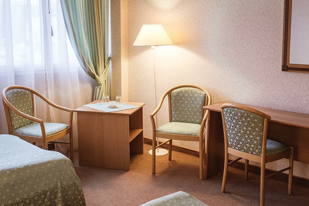 Достаточно просторные номера с достаточным набором удобств. Питание вкусное, но довольно дорогое, завтрак и ужин, входящие в стоимость проживания, радуют выбором блюд и очень вкусным приготовлением. Персонал очень вежливый. В целом гостиница понравилась