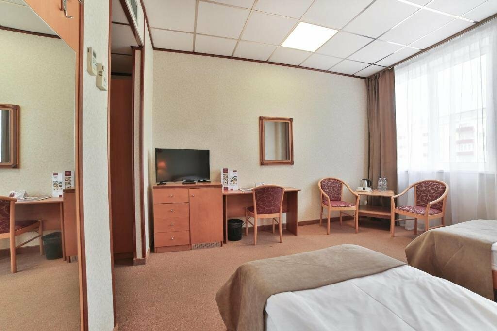 Гостиница вообще ТОПчик. Вам понравится. Здоровенные номера, широкие коридоры, приветливые сотрудники. Мебель отличная в номерах, В минибаре, по умолчанию, две бутылки газировки и бутылка питьевой воды, ещё бутылка воды на столике. Чайник, чашки, разумеется, есть… Два шкафа для одежды в одноместном номере!!! Много плечиков. Одноразовые тапочки 44 размера, а не как в большинстве гостиниц 40-го… Ресторан со здоровенным меню до 23:00