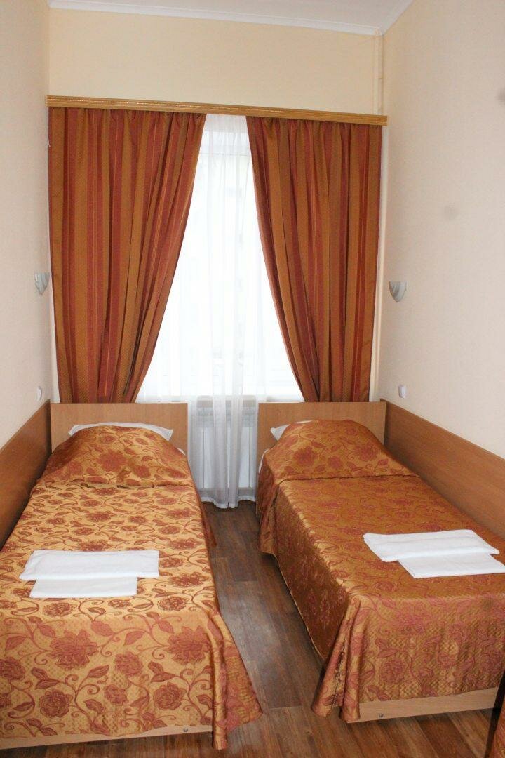 Уютный двухместный номер. Номер оснащен: 2 односпальные кровати, прикроватные тумбочки, шкаф, журнальный столик и зеркало. Для вашего удобства в номере есть телевизор, сплит-система, мини-холодильник, электрочайник, санузел совмещенный с душем (д...
