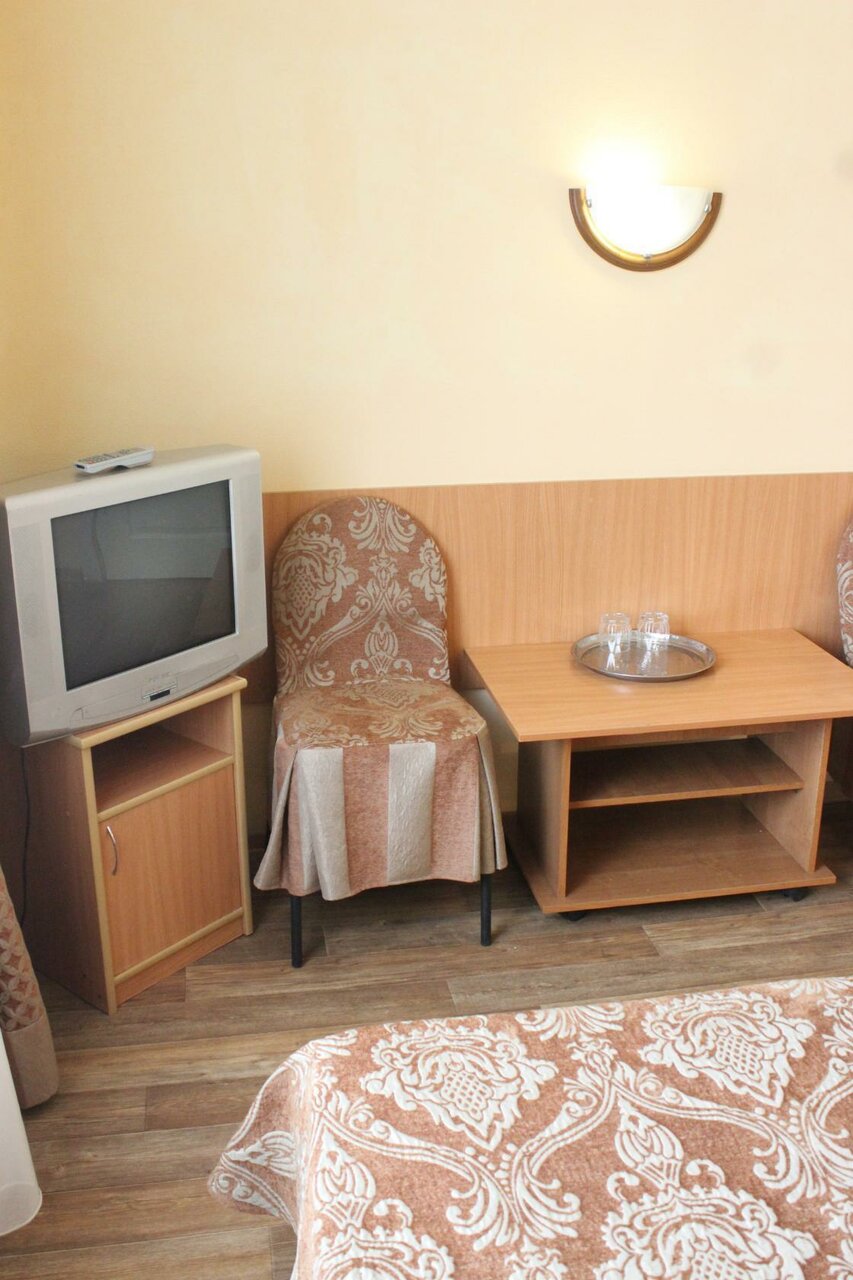 Если нужно остановиться на ночь без особых претензий, то здесь адекватные цены, соответствующие услугам. В номере есть столик, кровати, розетки, холодильник, телевизор. Телевизор не нужен, а розеток мало на 2-х-местный номер. Чтобы зарядить телефоны, пришлось холодильник отключать. Номера — двухблоковые, где на 2 комнаты один санузел. Мы жили одни, не было проблем с этим. Место тихое.