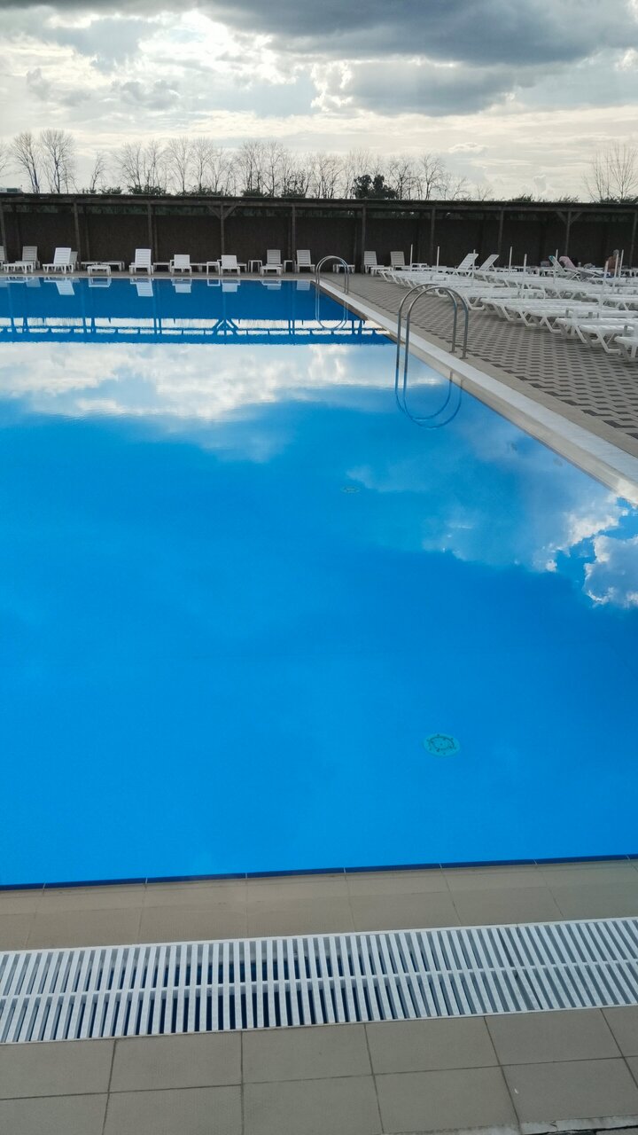 Плюс: бассейн Минус: бестолковые сотрудники, бегают и утверждают нельзя парить вейп. Курить нельзя. А кто курит то! Это пар! Надо выйти за территорию и там наслаждаться, так что мне стоять за забором с курящими сигареты людьми!? Я может сплю с этим вейпом и что теперь мне за забор лежак перетащить или каждую секунду бежать за забор!? Ущемление прав, испорченное настроение. Однако при входе есть правила посещения бассейна, где указано запрещено купаться в алкогольном опьянении, но алкоголь продают, пьют и купаются! Кстати если вам понадобится помощь в переносе огромного зонта — не дождётесь.