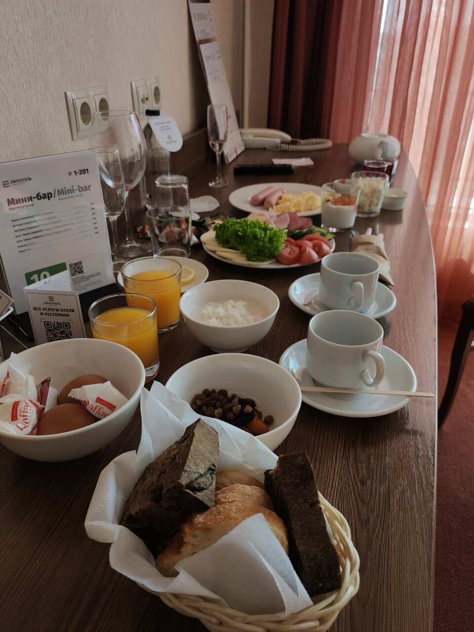 Мы заботимся об удобстве гостей и предлагаем воспользоваться услугой круглосуточной доставки еды в номер. Room-service входит в систему ресторанного обслуживания отеля, доставка производится из меню стейк-хауса «Тибон» и кафе «Веранда».