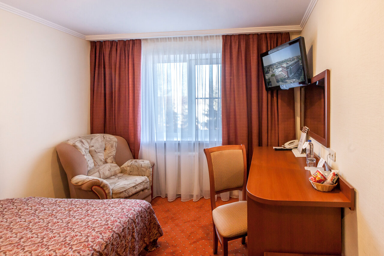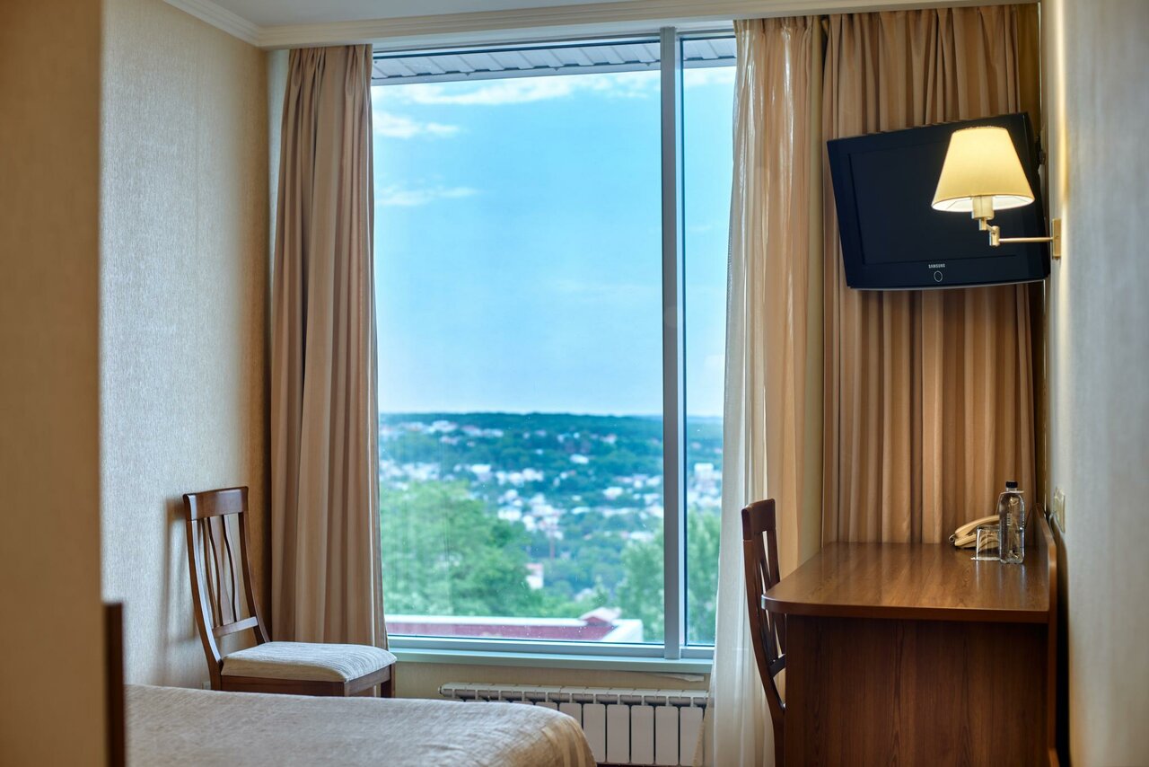 Уютный светлый номер с панорамным видом на город станет идеальным вариантом размещения в непродолжительной бизнес-поездке. В номере удобная кровать, собственная ванная комната и всё необходимое для комфортного проживания и отдыха.