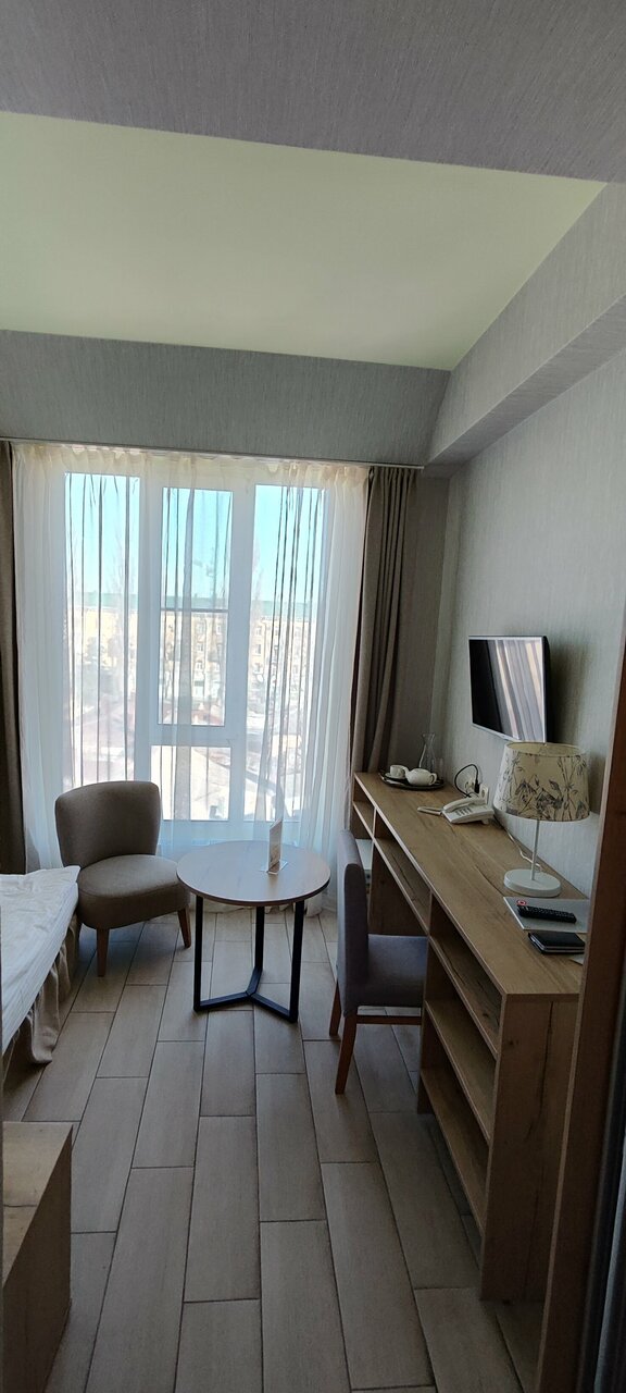 Хороший и уютный отель. Ресепшен работает 24/7 с приветливый и доброжелательным персоналом, быстро решают все вопросы. Бронировали полулюкс, номер не очень большой, но светлый с панорамным окном, большой ванной комнатой с душем и ванной. Завтраки входят в стоимость проживания. Немного снижаю оценку за то, что над отелем находится ресторан и все увеселительные мероприятия по выходным проходят у вас над головой. А слышимость в отеле слабоватая. Так что весёлую свадьбу мы слушали до 12 ночи. А больше минусов мы не обнаружили. Уборка номера была ежедневной, влажной и сухой. Полотенца, коврики в ванной меняли каждый день, мусор тоже ежедневно выносили, постельное бельё сменили на третий день. В целом всё понравилось.