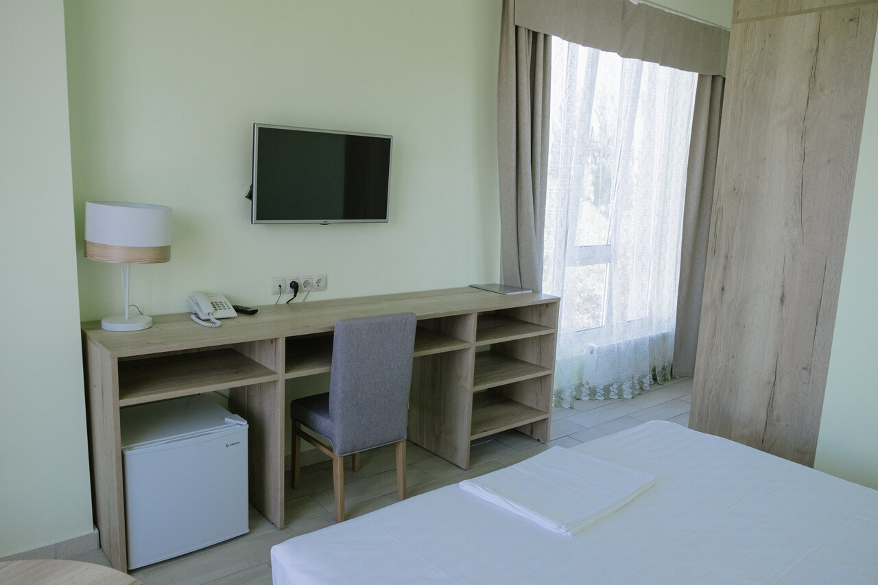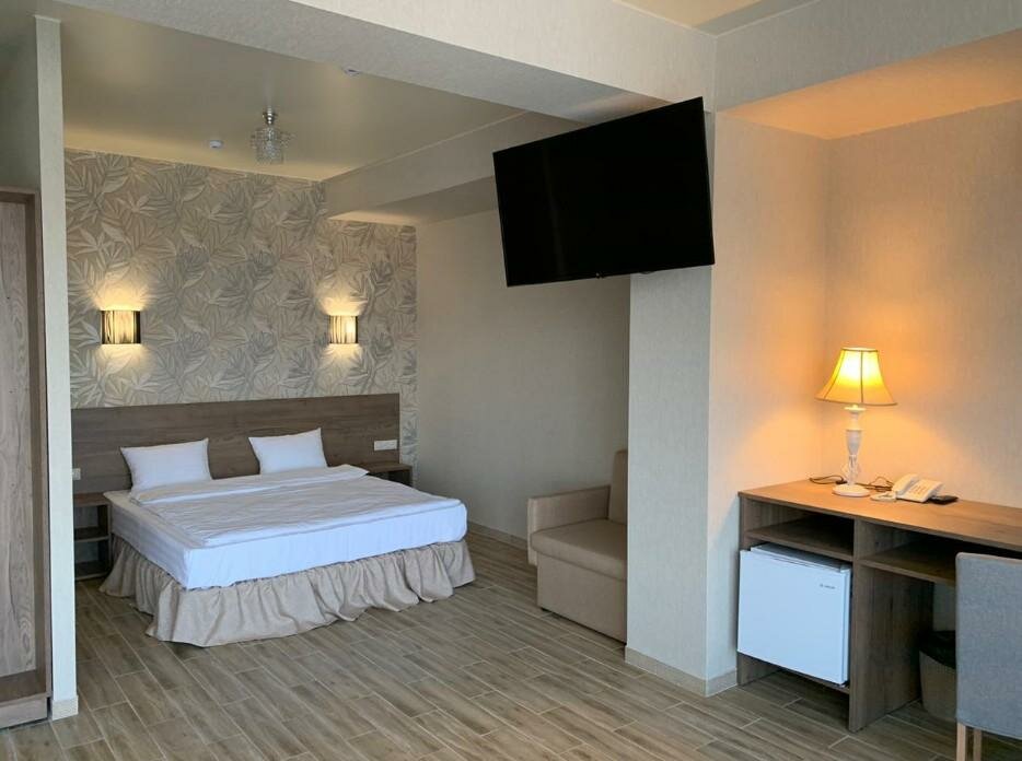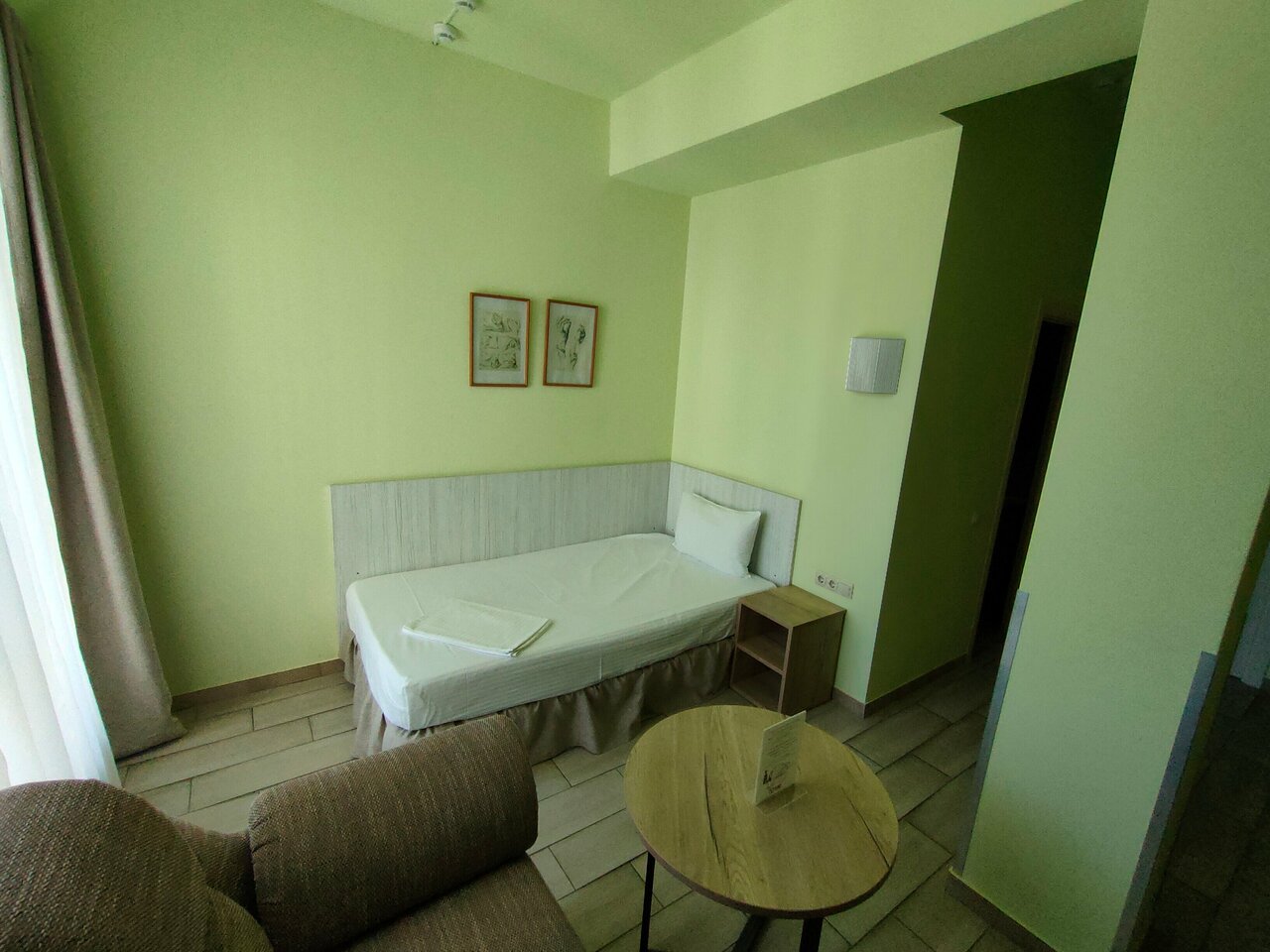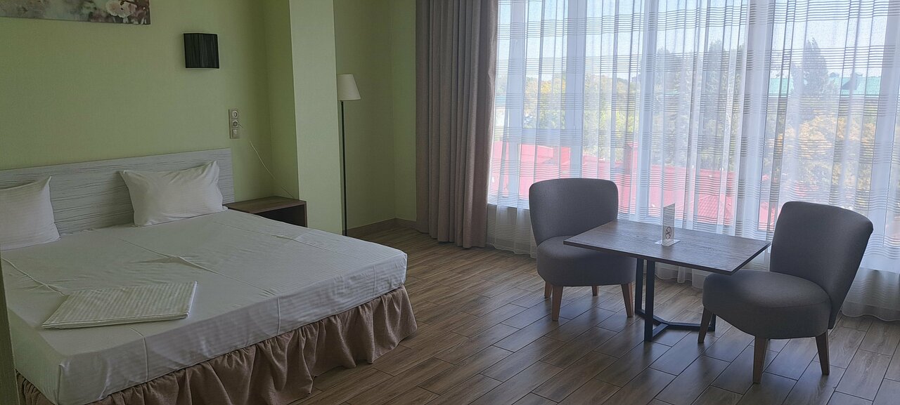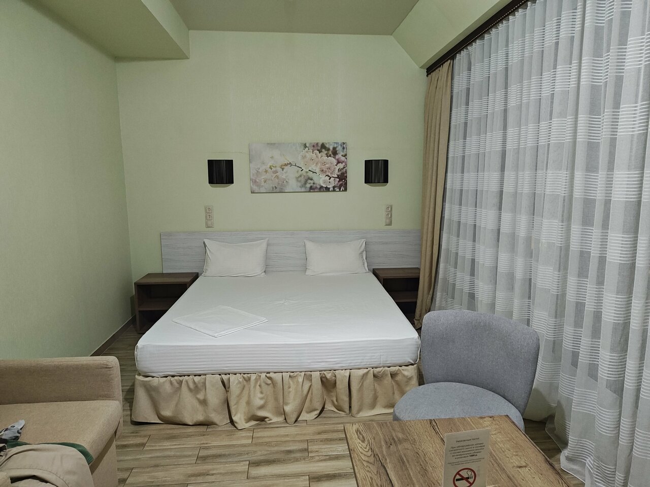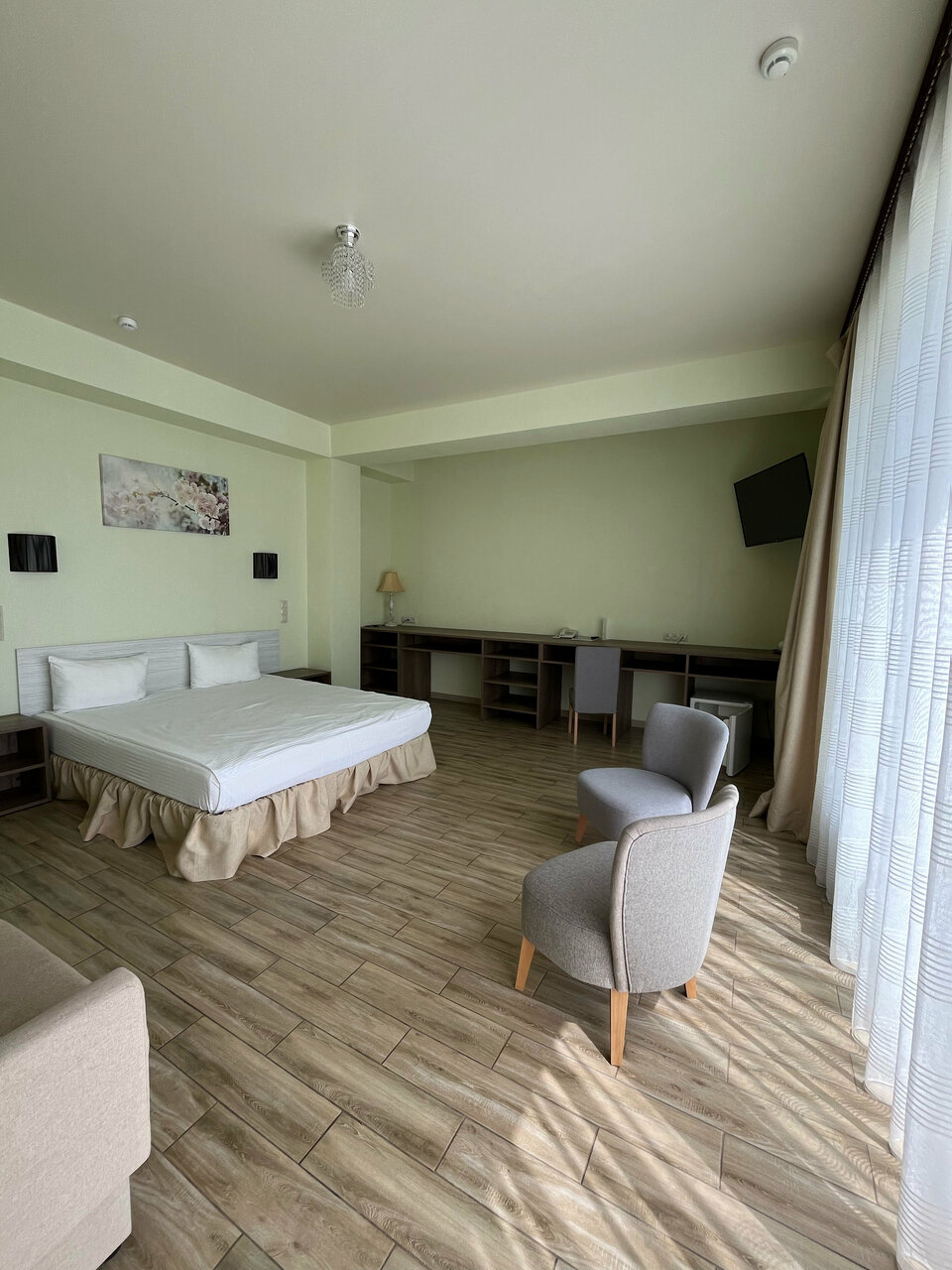 Номер площадью 25 кв м с большой кроватью 180х200 и удобным раскладным диваном.