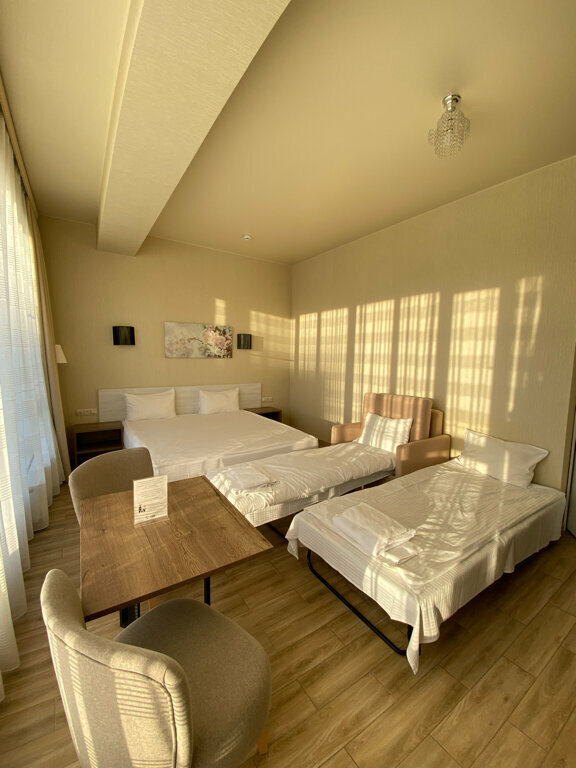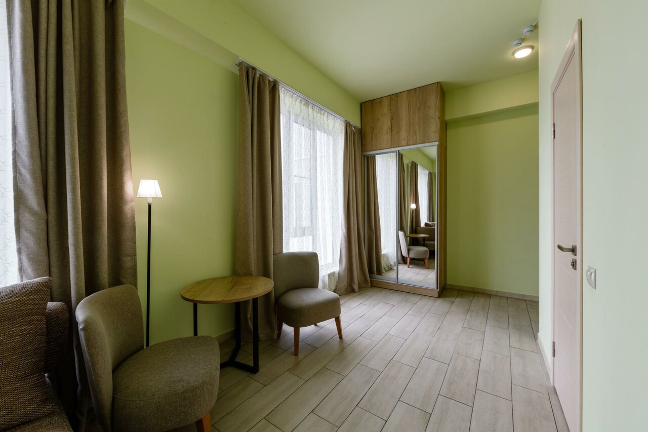 Останавливались проездом на 1 ночь. было забронировано 2 номера с доп.диваном, в каждом номере 2 взр + ребенок. В одном номере почему-то вместо дивана для ребенка, Оказалось маленькое раскладное кресло, обратились на ресепшен, номер поменяли. Вопрос остался: если забронирован номер с диваном, зачем подпихивать другой тип номера? За это минус звезда. Ужин заказали в номер из ресторана (быстро, вкусно). По тарифу входил завтрак, но К сожалению, в наш день (31.12) кухня не работала . На ресепшен сказали что предупреждали об этом сервис бронирования, но где-то передача информации застряла — мы были к такому не готовы. Также сначала нам не хотели возвращать деньги за опоаченный заранее завтрак. Но после обращения в сервис бронирования, на ресепшен нам вернули все-таки деньги. За это звезду не снимаю (вероятно косяк системы бронирования), но осадочек остался. Хотя нас тут же сориентировали, где рядом можно позавтракать
