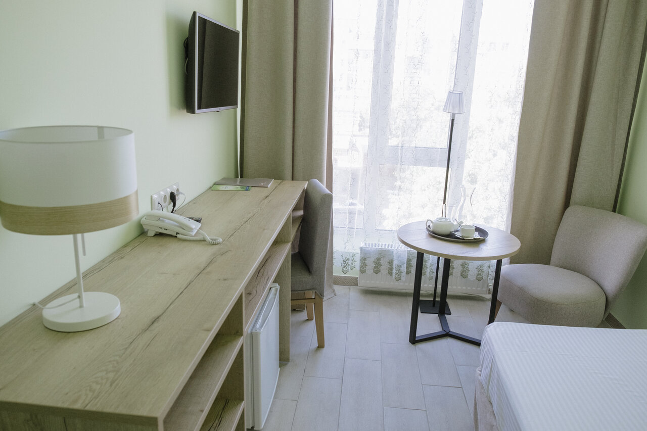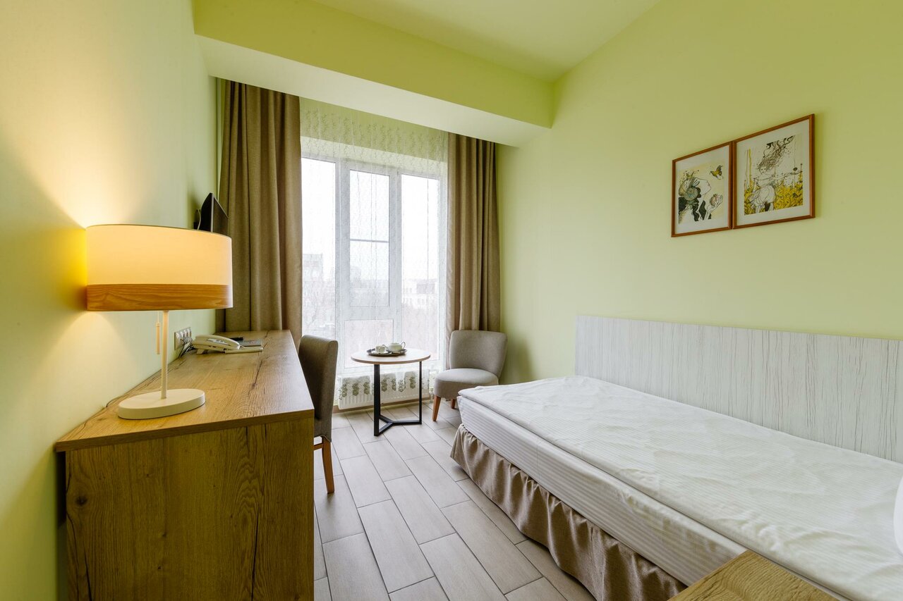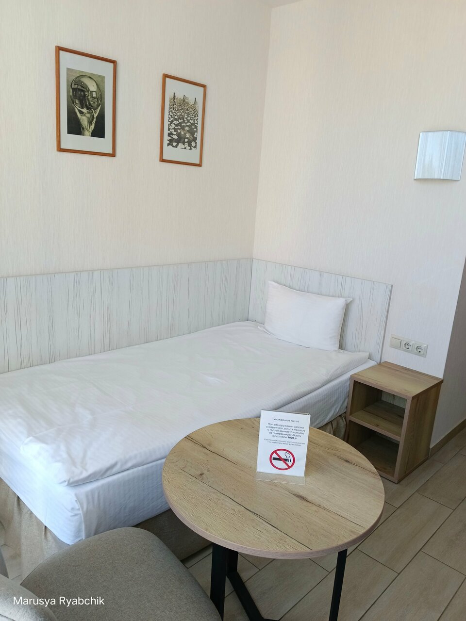 Небольшой одноместный номер 13-15 кв м. Кровать 110х200. Номер полностью оснащен.