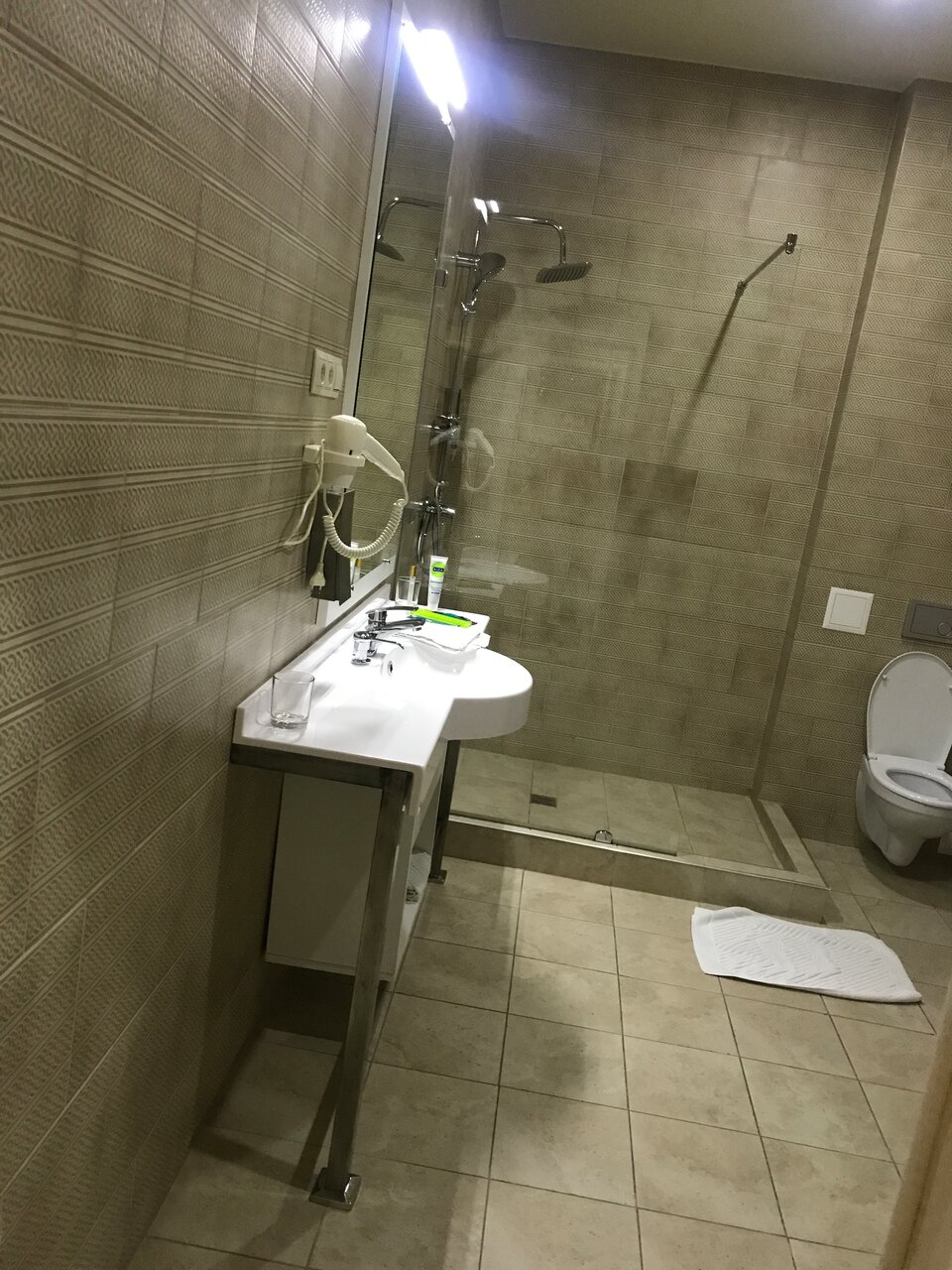 Жили тут 7 дней. Хорошая гостиница. Номер уютный. Завтраки однообразны, но т.к. швед.стол каждый день можно было брать разное. При проживании можно бесплатно заниматься в тренажерном зале , а так же ходить в хамам. Вообщем остались довольны. Из минусов : В ванной все время был запах застоявшейся воды и в душ.кабине плохо работал водяной сток. Так же очень мягкий матрас, лежишь прям волнойно это терпимо