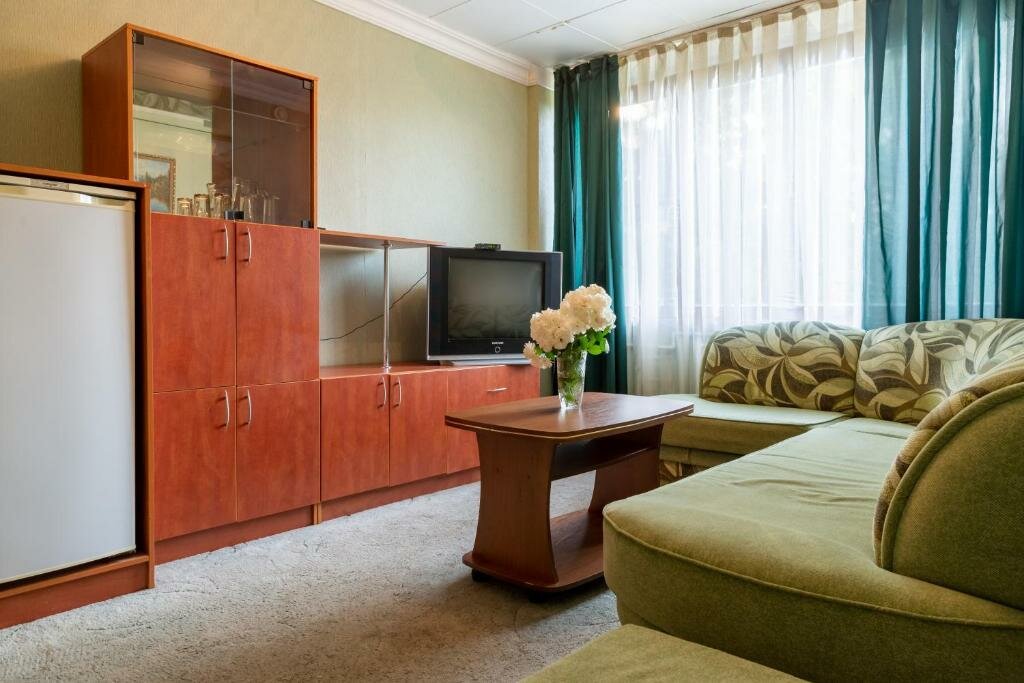 Гостиница советского розлива. Мебель ушатана, сантехника тоже. Но здание находится в зелёной зоне и это классно! Свежий воздух, тихо и отлично спится.