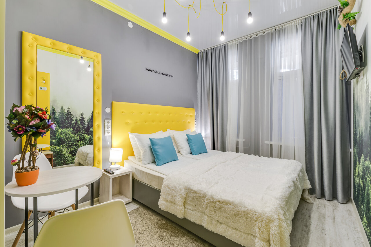 Гостиница Good Luck (Ставрополь, ул. Ленина, 392) предлагает недорогие номера с современным дизайном. Удобства включают бесплатную парковку, Wi-Fi на всей территории, санузел в номере, холодильник, телевизор, чайник и микроволновку. Гости могут воспользоваться общей кухней, утюгом, тапочками и услугами салона красоты. Отель расположен в 3–5 км от центра. Заезд — с 14:00, выезд — до 12:00. Работает ежедневно с 08:00 до 23:00. Подробнее: goodluckstav.ru, тел. +7 (928) 005-85-24.