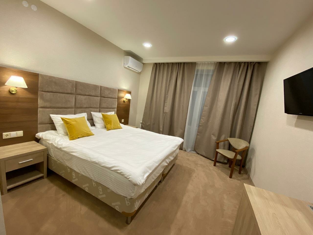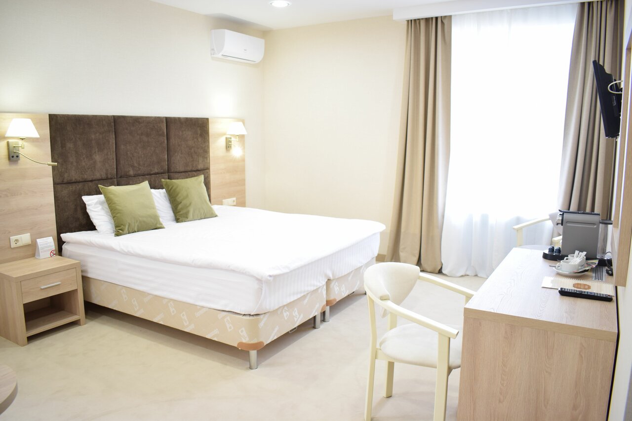 Удобное расположение гостиницы-центр города, рядом торговые центры, кинотеатр -все в шаговой доступности. Безупречно чистые номера, большие, в номере было все необходимое — халат, тапочки, косметика, фен, вода в бутылке , чайные пары. Персонал работает слажено , внимательные, но не навязчиво, что считаю очень важным для моего восприятия. Завтраки вкусные- есть большой выбор.