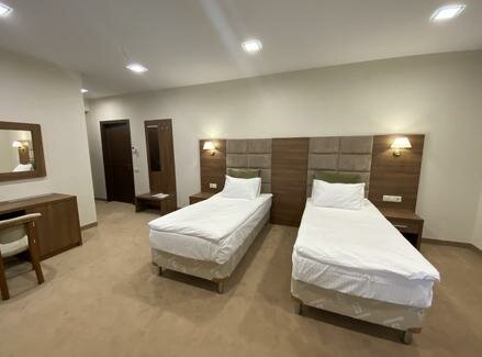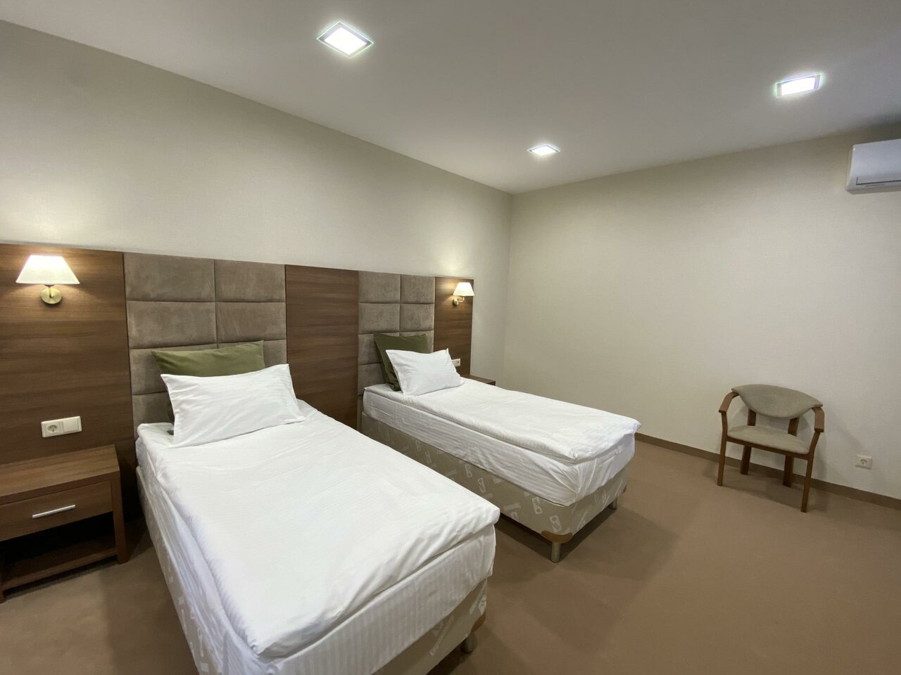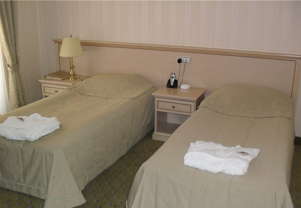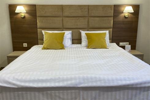 - Хорошая комплектация номеров (халат, тапочки, косметика, фен, вода).