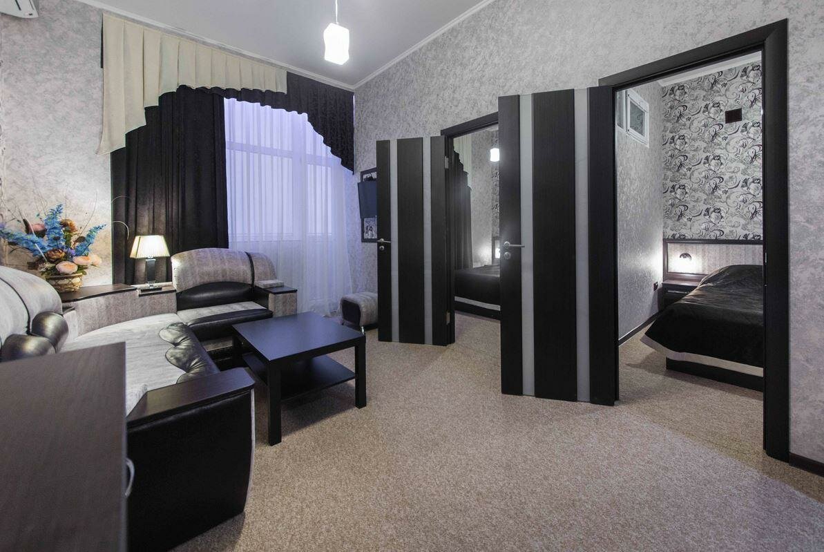 Гостиница понравилась. Поселились в семейном номере. Всё просто супер! Семья из 6 человек свободно разместилась. Две комнаты с еврокроватями и гостиная с угловым диваном, по двое спокойно разместились. Супер белое, чистое бельё, две душевые кабины (одна из них в спальне). Телевизор в каждой комнате. Шкаф большой для верхней одежды и обуви, комод, прикроватные тумбочки. Два выхода на балкон. Даже вода в бутылках и холодильник. Отдохнули отлично! Очень приятная девушка на ресепшине. Рекомендую!