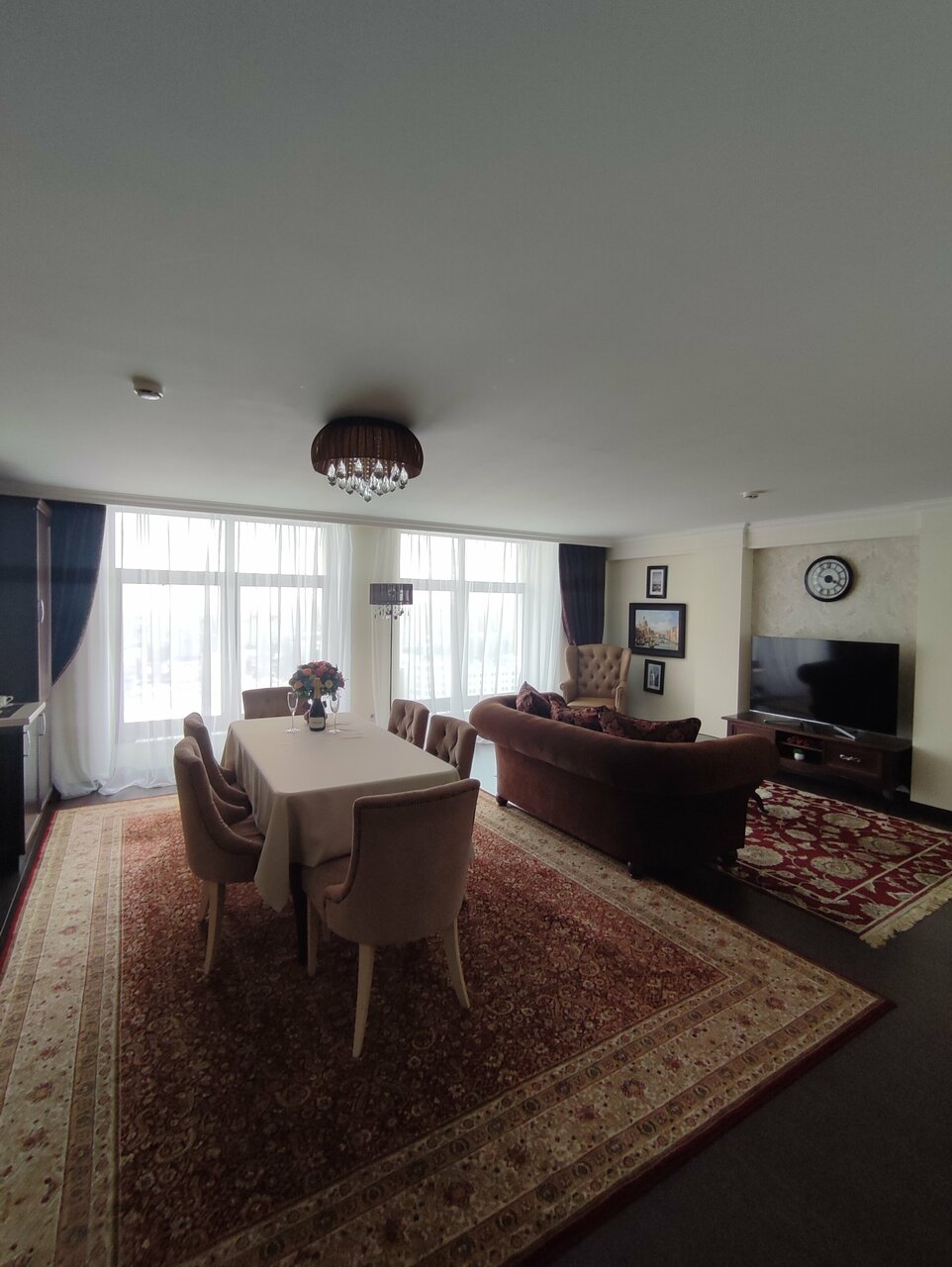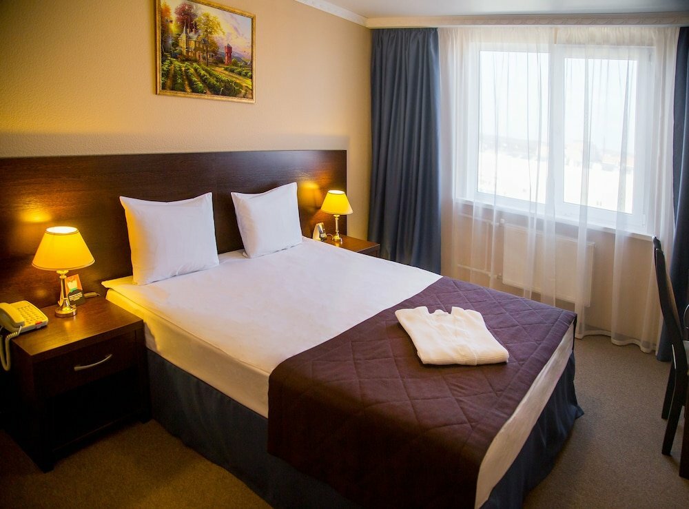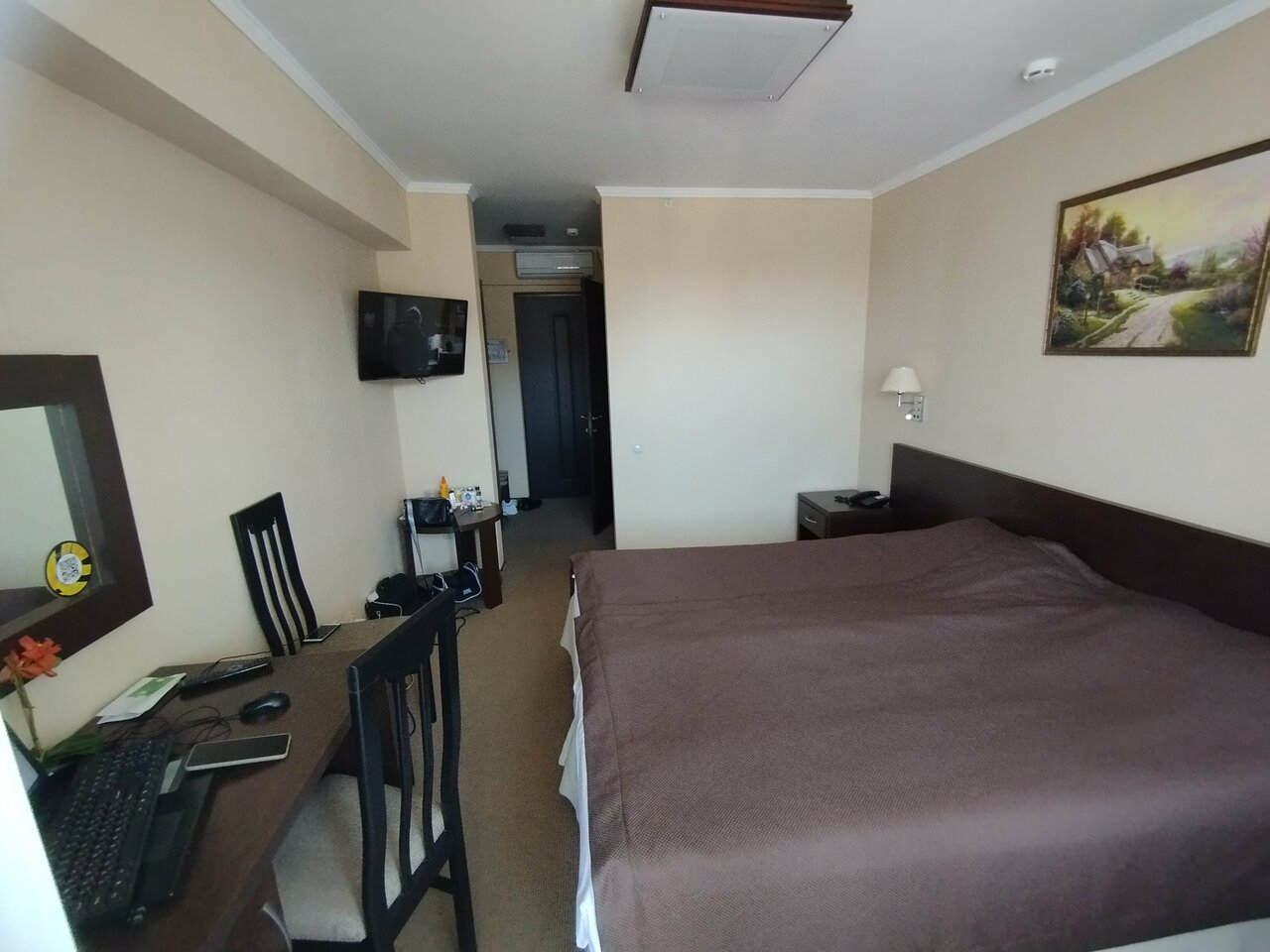 Хороший м отель, многоэтажный отель, со всеми удобствами, своевременная уборка номеров, предоставляют полный набор одноразовых средств для гигиены, приятный и вежливый персонал, всё подскажут и с ориентируют, отличный шведский стол на завтрак в местном ресторане, так же есть всё для досуга: Караоке, Сауна, Хамам, Красивый вид из окна на город, магазины в пешей доступности, недалеко много разных кафе и ресторанов, напротив торговый комплекс