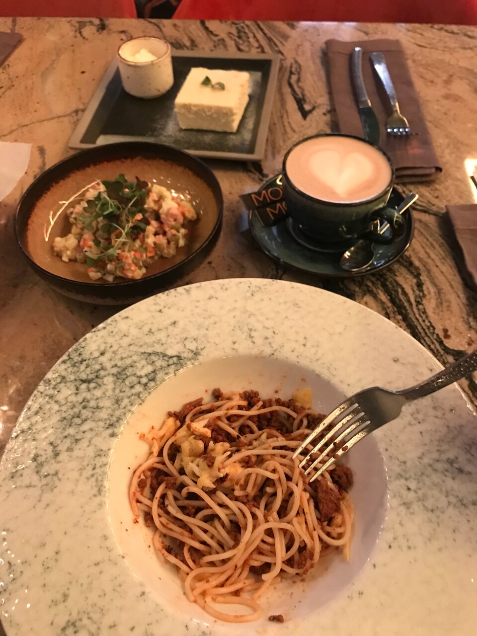 Очень плохой завтрак. Вареники с картошкой — это просто кеся-меся из теста с пережаркой. Сосиски даже не подогреваются, плавают холодные. Ну и так далее. На завтрак лучше ходить через дорогу. Да и вообще с этим рестораном лажа. Пришёл пообедать перед отъездом, попросил позвать официанта. За 20 минут никто не подошёл, сидел, ждал, было даже интересно, придут или нет:)) Нет, не пришли, ушёл, нужно было уже ехать в аэропорт. Притом сидел напротив барной стойки Никто да же в мою сторону не посмотрел ни разу! Просто жесть:)) номер убирали, норм. По уровню в общем не более 3 звёзд, а то и 2+ Девчонки на рецепшен классные:) вежливые, учтивые.