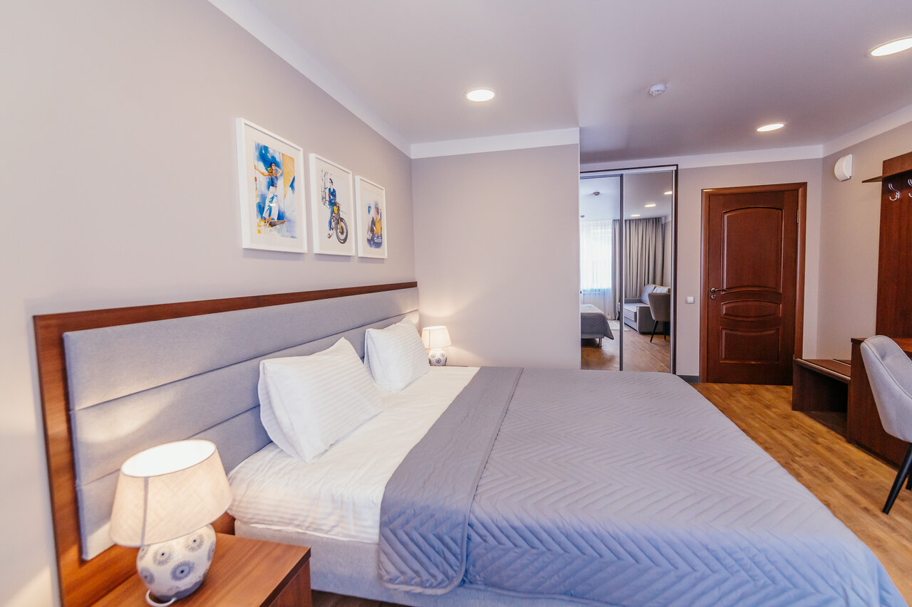 Удобства: — Номера с кондиционером, Wi-Fi, телевизором, санузлом, звукоизоляцией. — Крытый бассейн, сауна, баня, сад. — Бесплатная парковка, платный трансфер (аэропорт, вокзалы, ТЦ). — Кафе, столовая, завтрак (опция), конференц-зал, коворкинг. — Услуги: прачечная, уборка, камера хранения, детские кроватки.