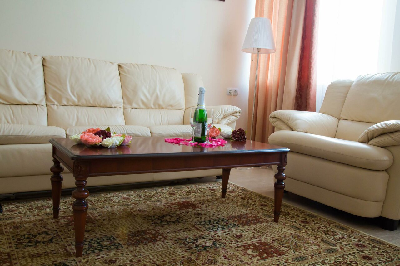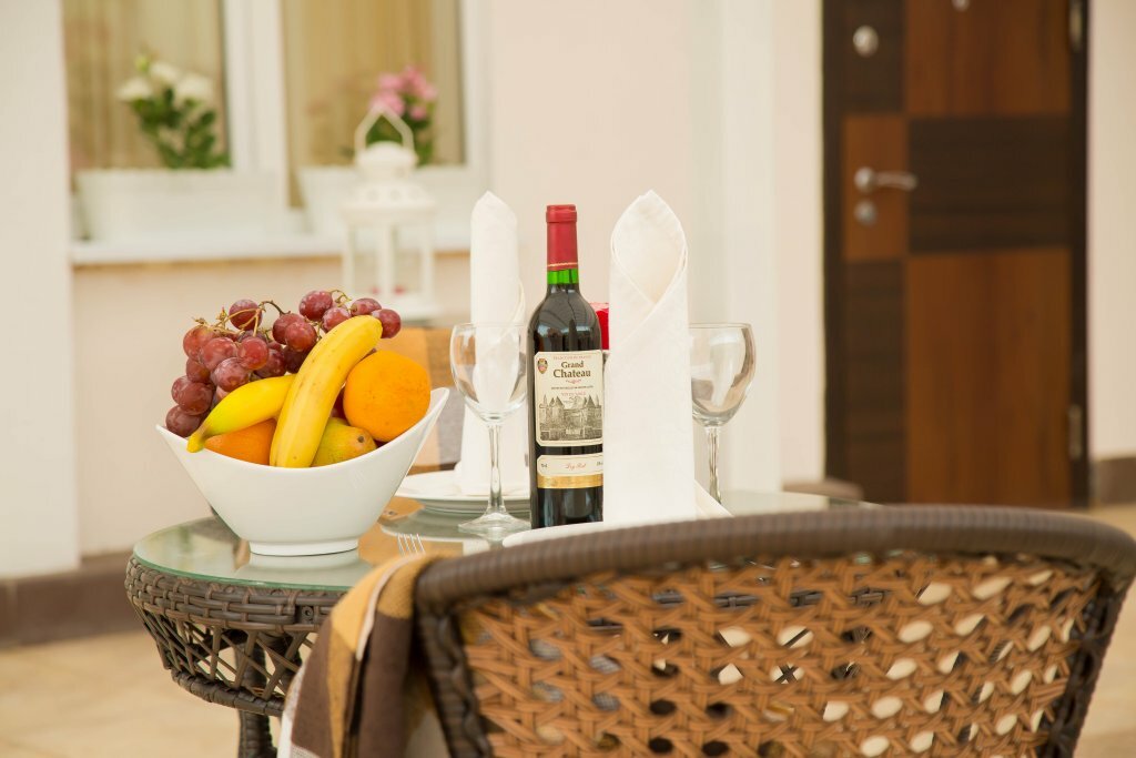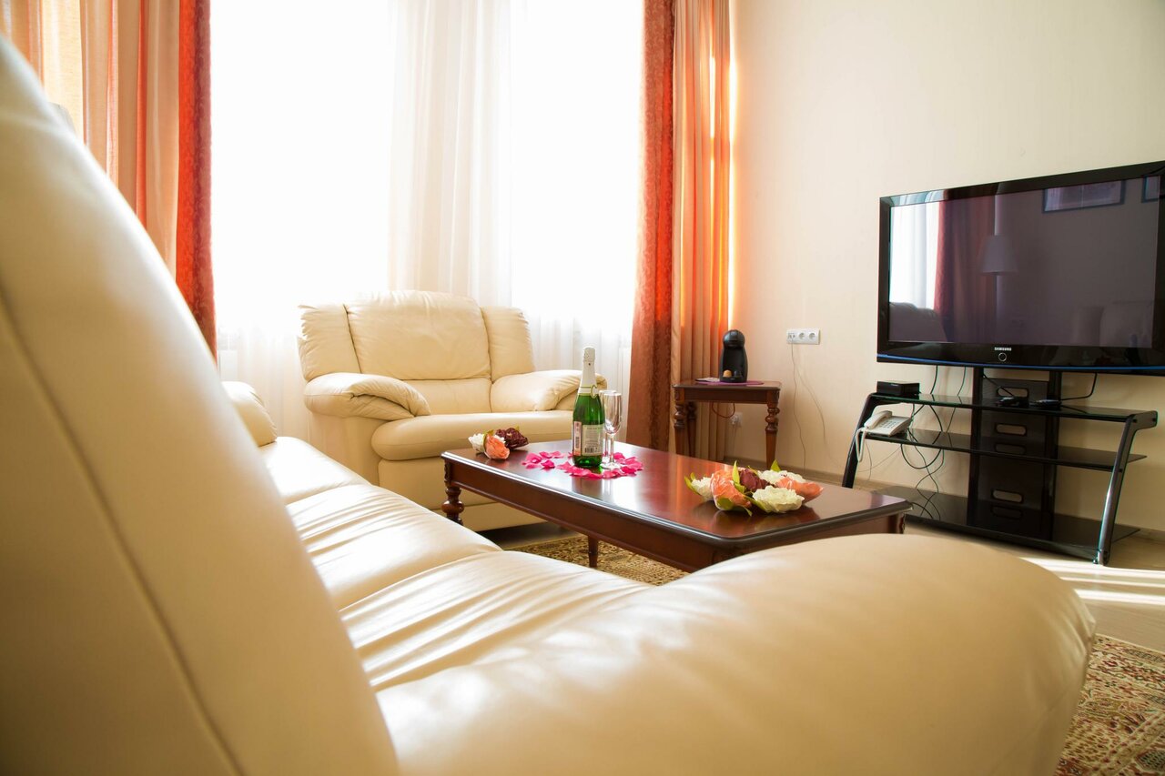 Удобства: — Номера с кондиционером, холодильником, ТВ, Wi-Fi, санузлом и чайными принадлежностями. — Бесплатная парковка, лифт, прачечная, камера хранения, сейф. — Тренажёрный зал, сауна, баня, теннисный корт, игровая комната. — Ресторан, кафе, бар, летняя веранда, конференц-зал. — Трансфер до аэропорта, завтрак (опция).