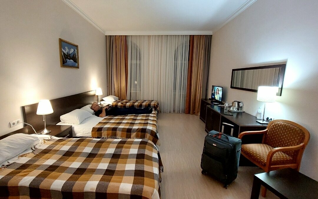 По началу складывается впечатление роскоши и комфорта. Снажури выглядит очень масштабно. Внутри все как будто бы все рассчитано на огромное количество людей, по факту как в фильмах ужаса, где ты только один помтоялец на огромную территорию. Все самое необходимое есть в номере, приемлемые цены на любой кошелёк. Огромная парковка является плюсом. Вот только расположение самой гостиницы вроде бы и не плохо, почти возле рынка, но очень далеко от центра где можно хоть где то погулять. Если вы чисто по работе и не хотите сильно тратиться , то это место идеальное для вас.