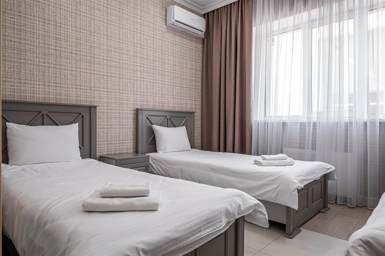 Двухместный номер 'TWIN Comfort', вместил в себя все необходимые удобства, для комфортного проживания т.к. : Уютный номер 20 кв. м ., фен, чайник, телевизор, халаты и многое другое!