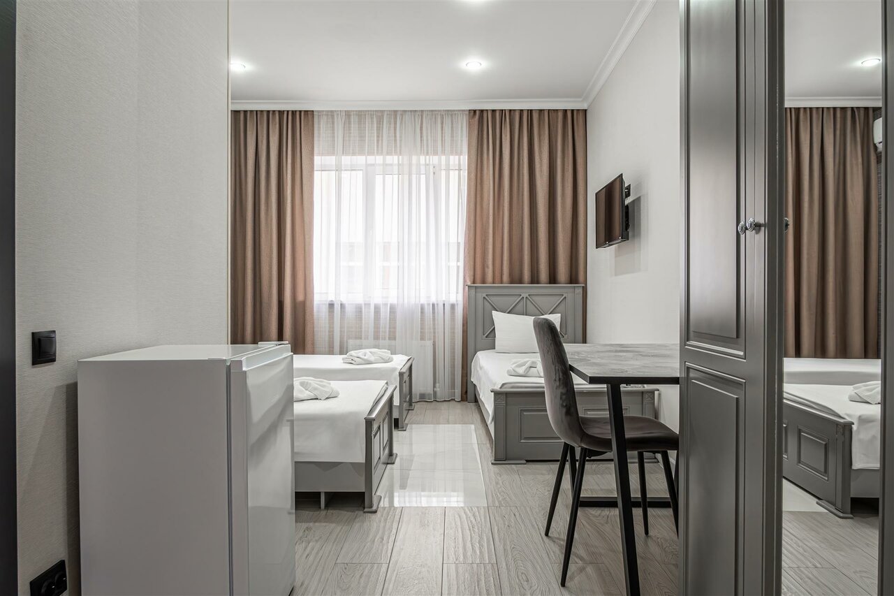 Чистая, новая гостиница. Заботливый персонал. Очень удобные матрасы, спала как богиня! Особая благодарность за то, что пустили с собакой! Если буду в Ставрополе, поселюсь здесь же.