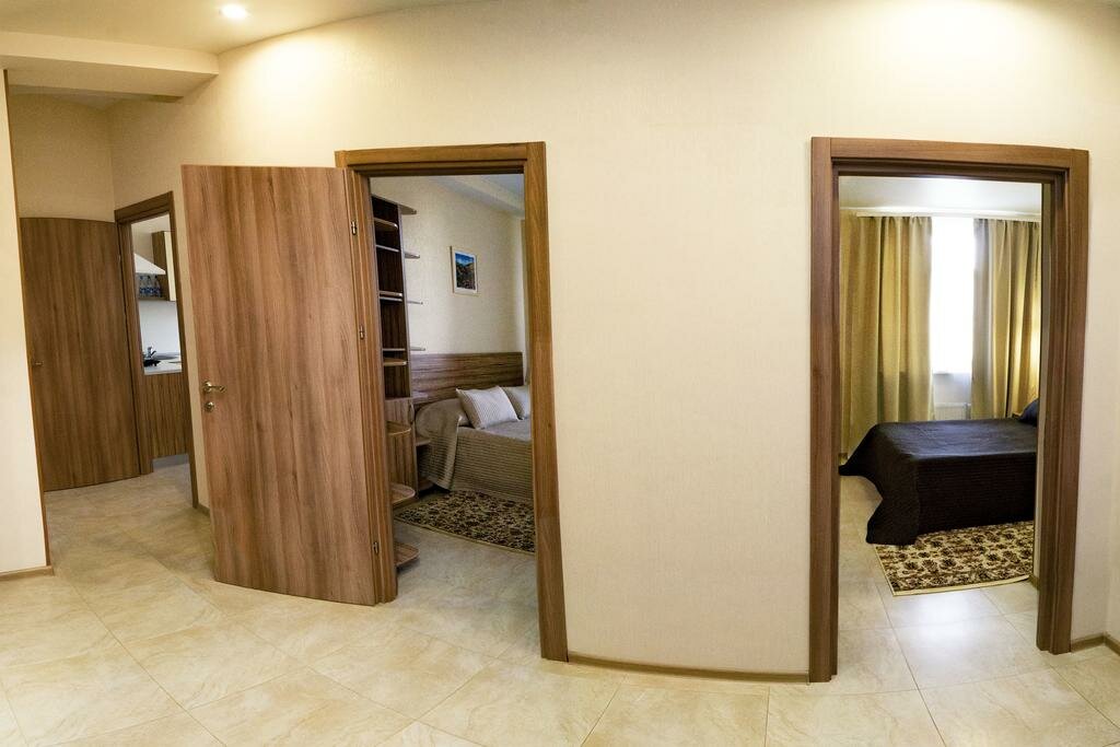 Двухкомнатный номер, предназначенный для размещения двух или более человек (семьи) с кухонным гарнитуром.