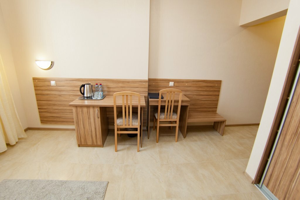 Удобства: — Номера (от 2500 до 6000 ₽/ночь) с кондиционером, Wi-Fi, ТВ, мини-баром, санузлом, феном, халатами. — Кухонные уголки, чайники, микроволновки в некоторых номерах. — Бесплатная парковка, платный трансфер (аэропорт). — Ресторан, кафе, бизнес-центр, конференц-зал. — Услуги: прачечная, уборка, хранение лыж, американский завтрак.